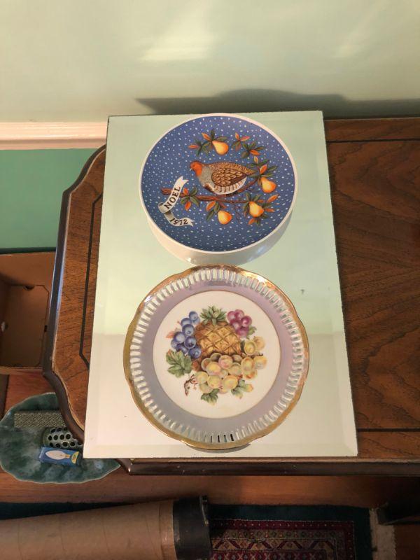 Partridge in a Pear Tree plate and fruit theme plate.