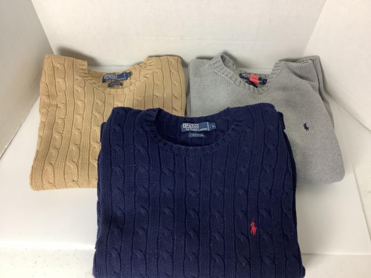 J/C3 1472. Three Ralph Lauren 100% Cotton Sweaters Size Large