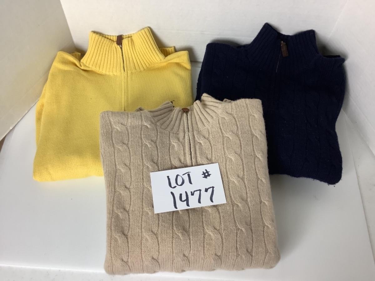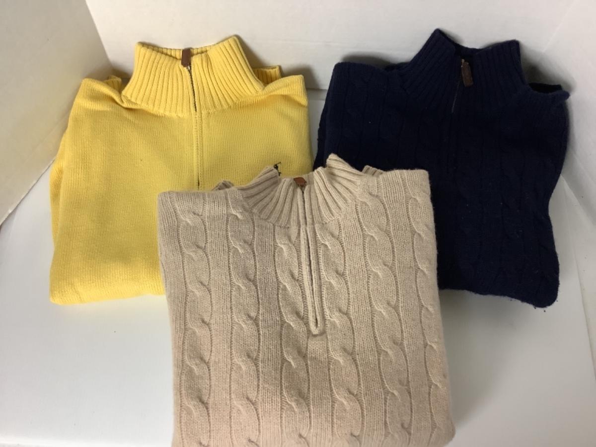 J/C3. 1477. Three Mens Ralph Lauren Polo Sweaters Size Large ( 2 are Lambs Wool )