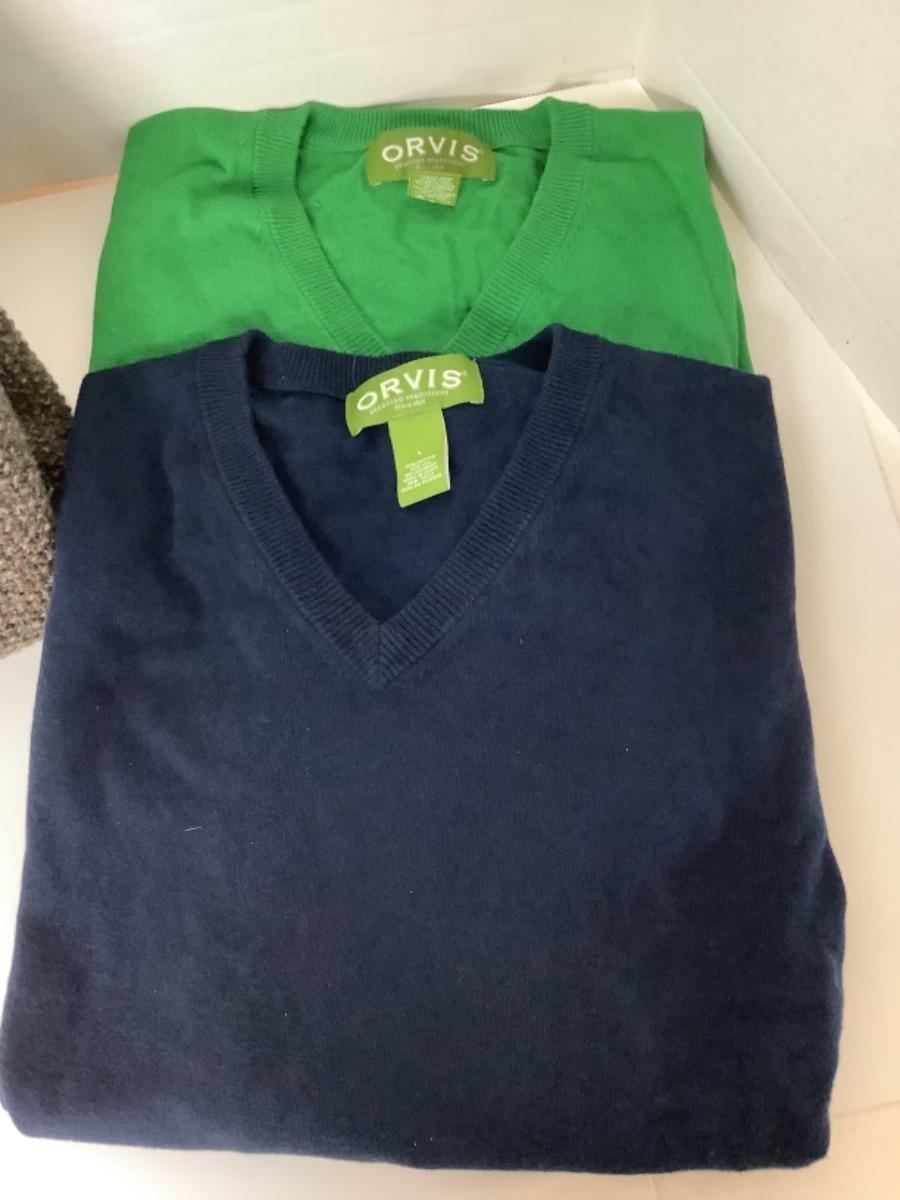 Three Mens Orvis Sweaters Size Large ( 2 are Cotton/Silk )