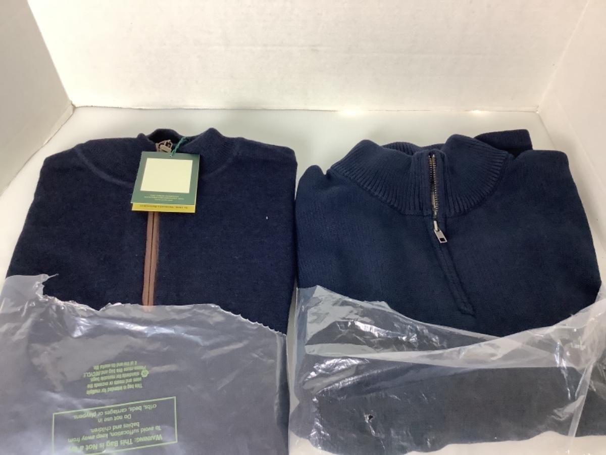 J/C3. 1529. New in Package Mens Navy Sweaters ( 1 Orvis & 1 L.L.Bean ) Size Large
