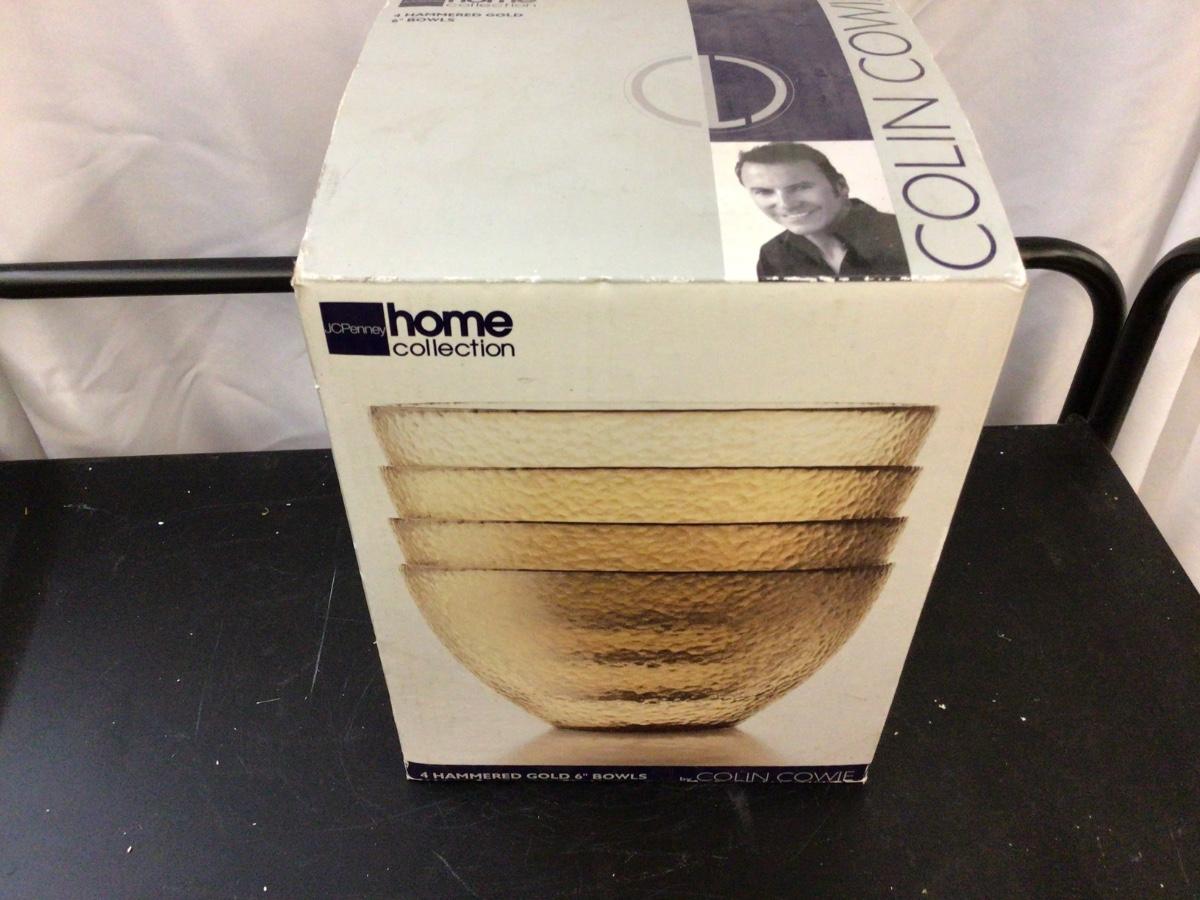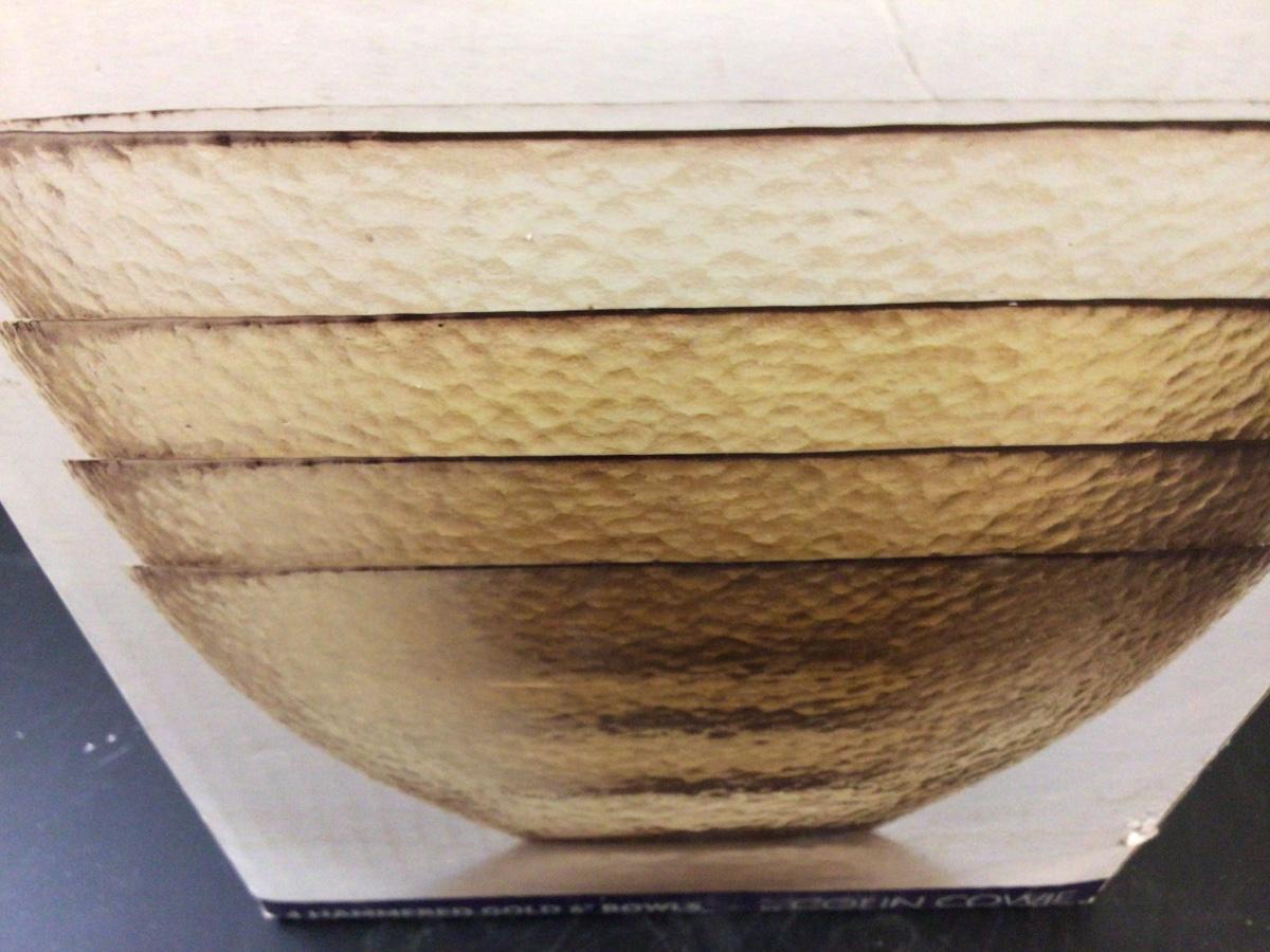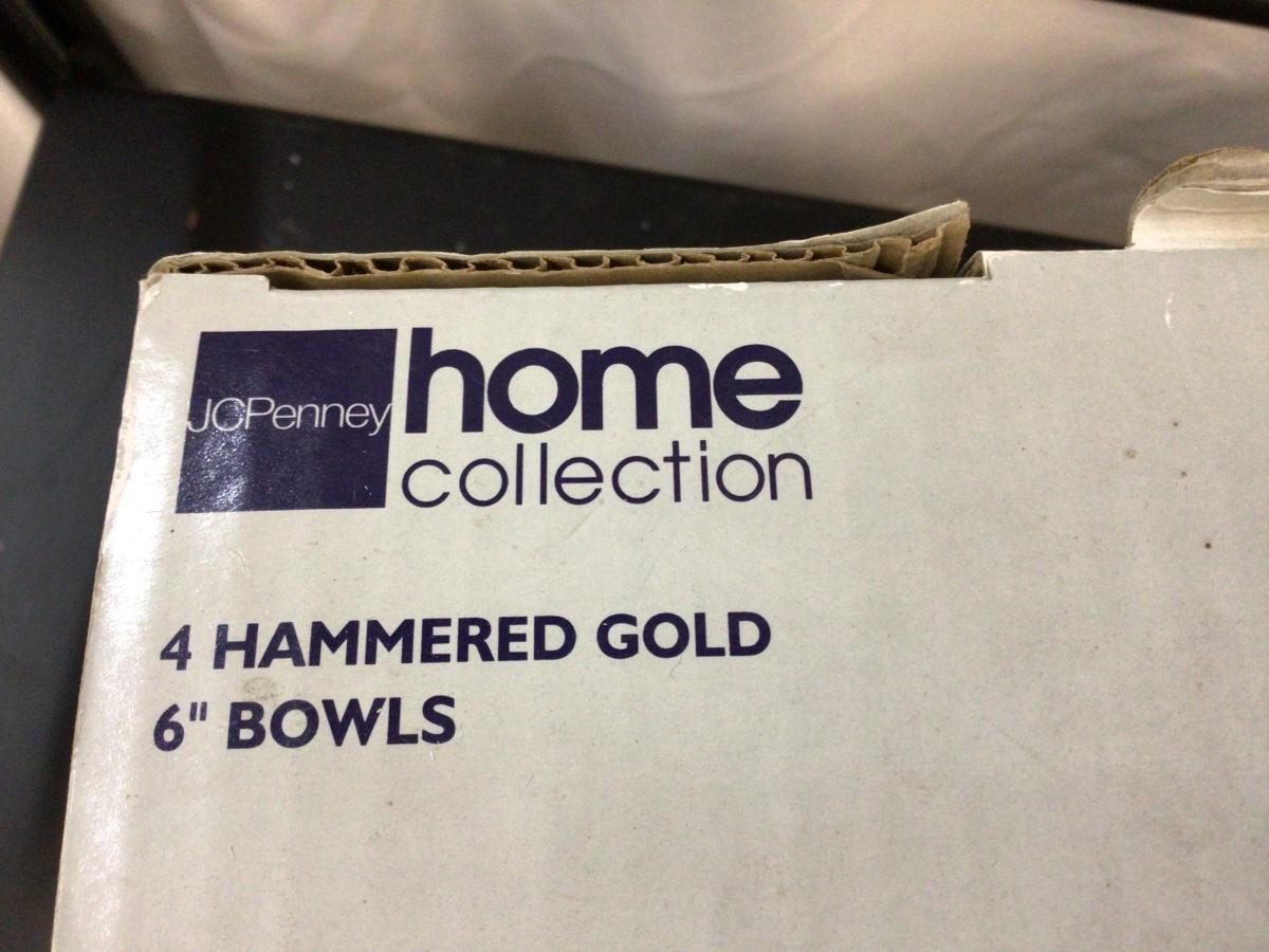 You get this great set of 4 JcPenny Home collection se5 of glass bowls. Hammered Gold in color.