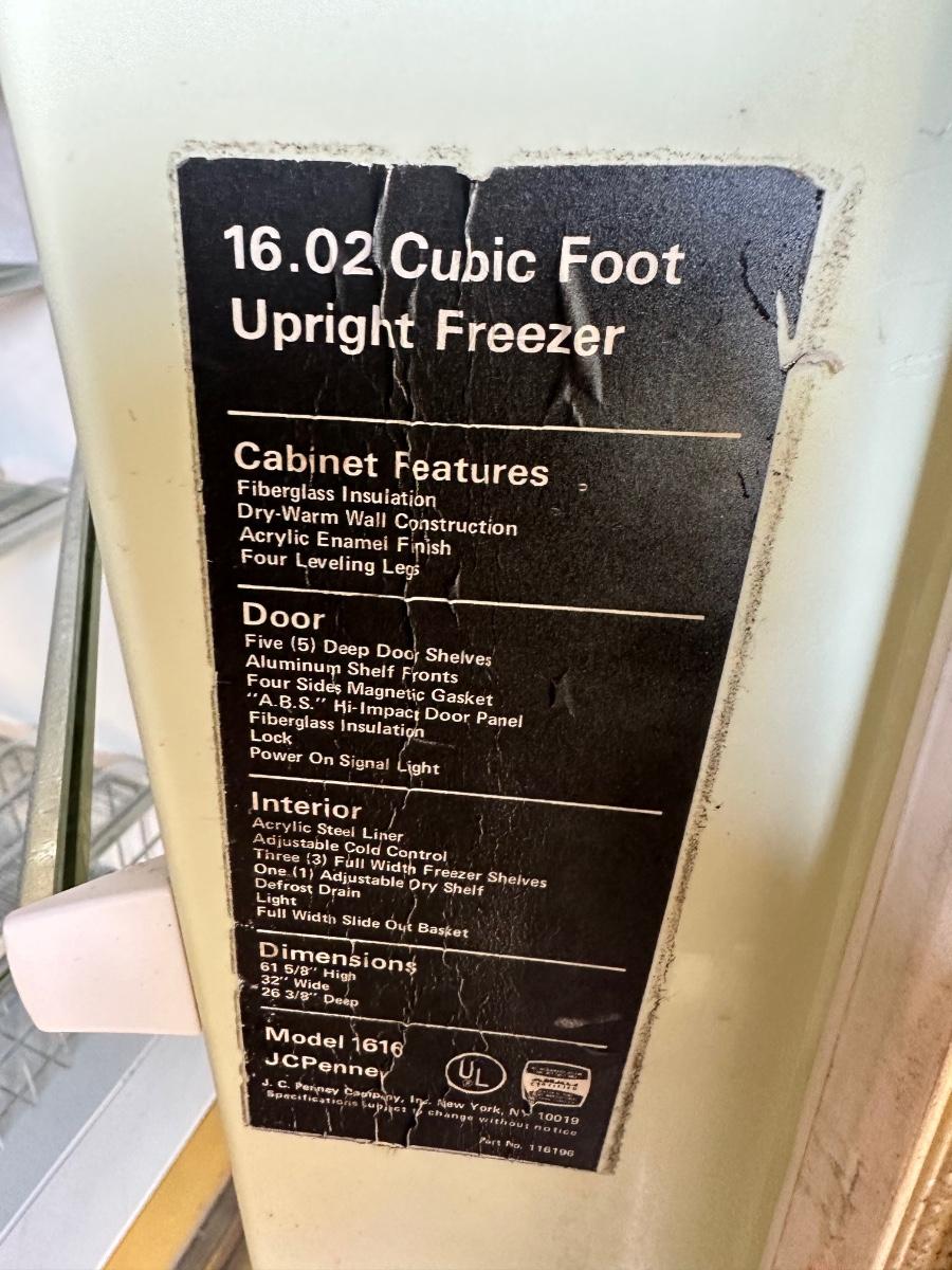 JCPenny stand up 16 cubic feet freezer.
