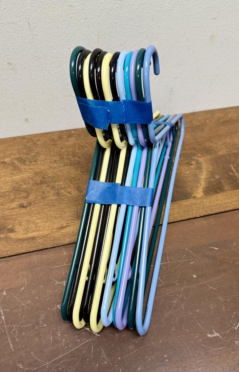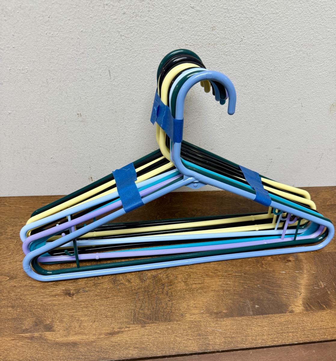 Durable and light plastic hangers. Multiple colors, good condition.