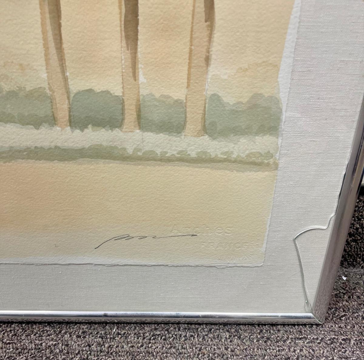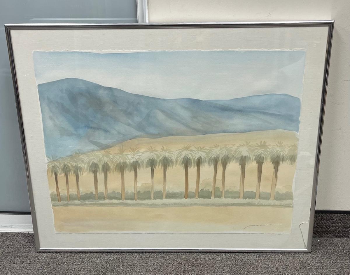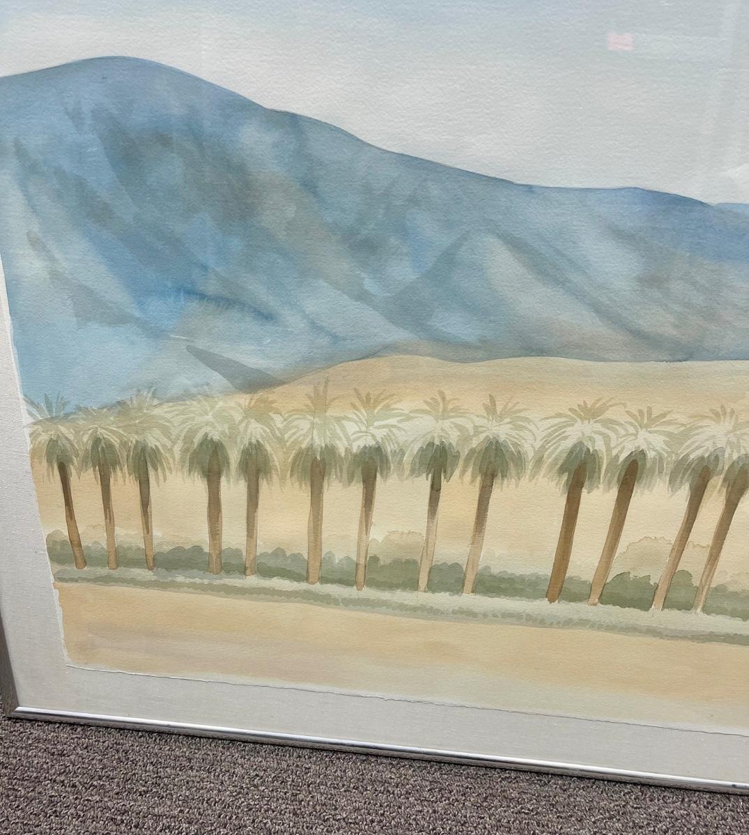 Large, Framed, watercolor original, line of Palm Trees landscape, signed