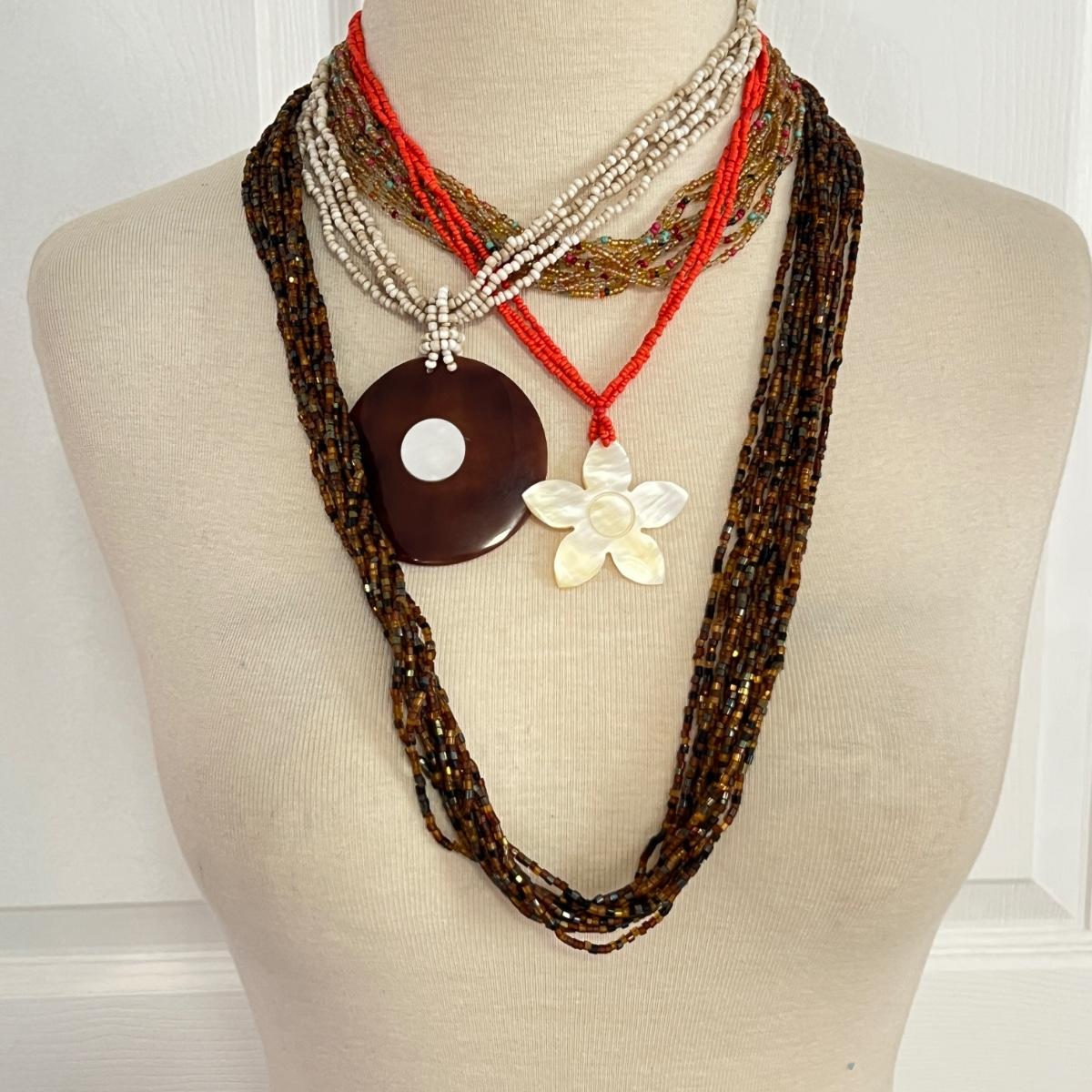 Necklace Lot - Seed Beads, Mother of Pearl, Earrings Set