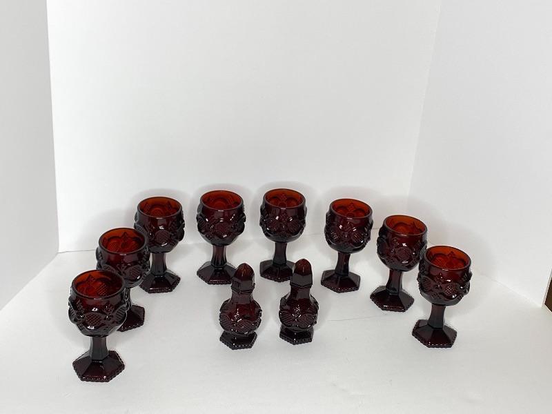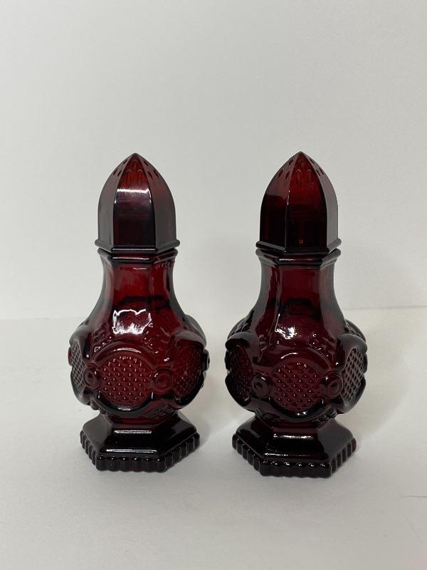 Avon Cape Code Red set of Salt and Pepper Perfume Bottles and 8 Small Mugs