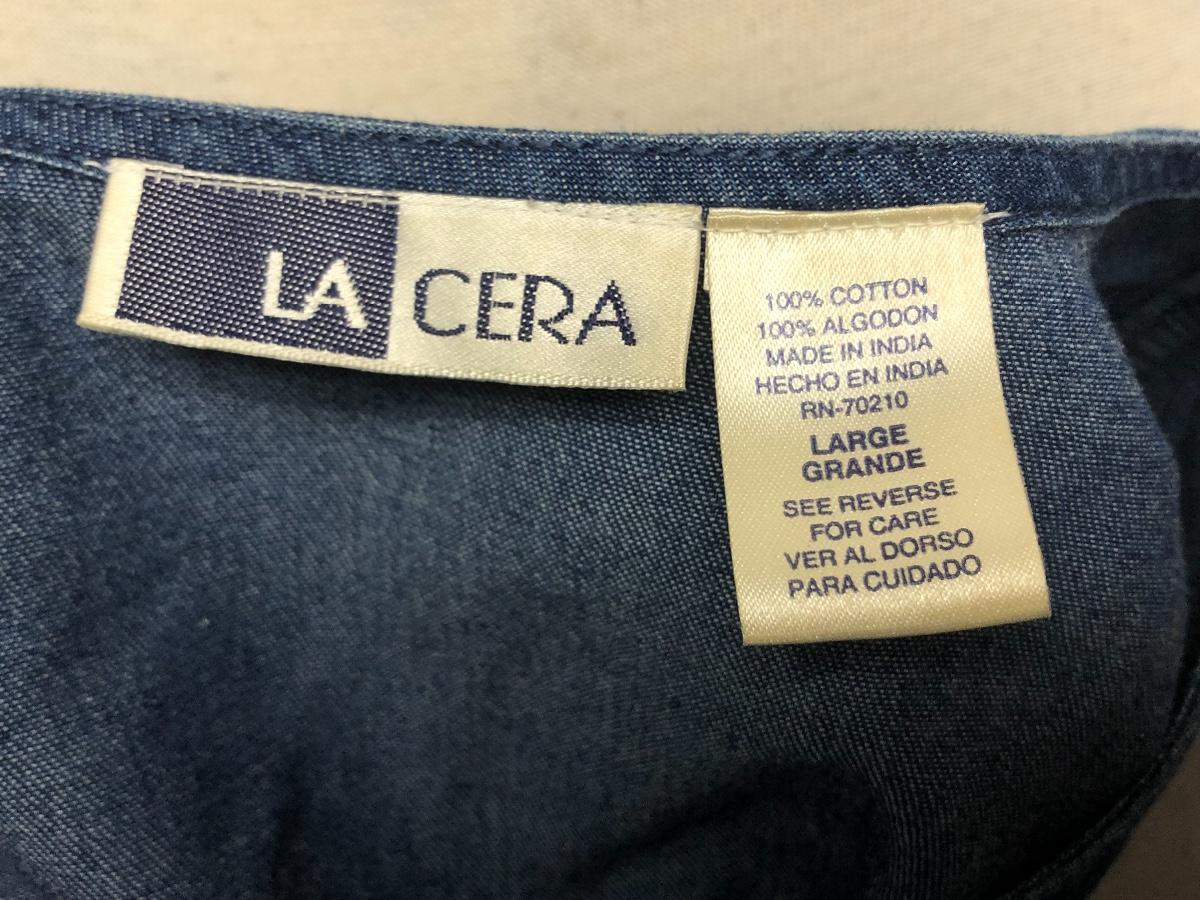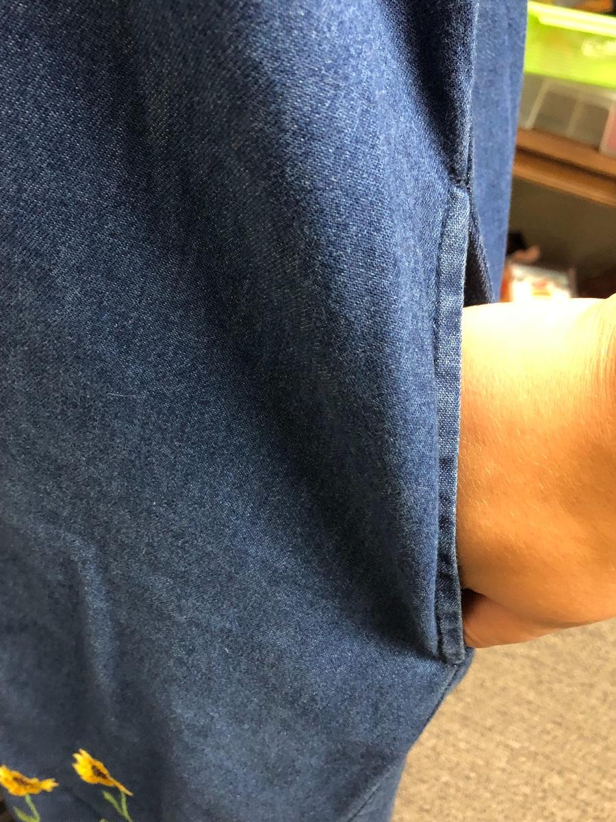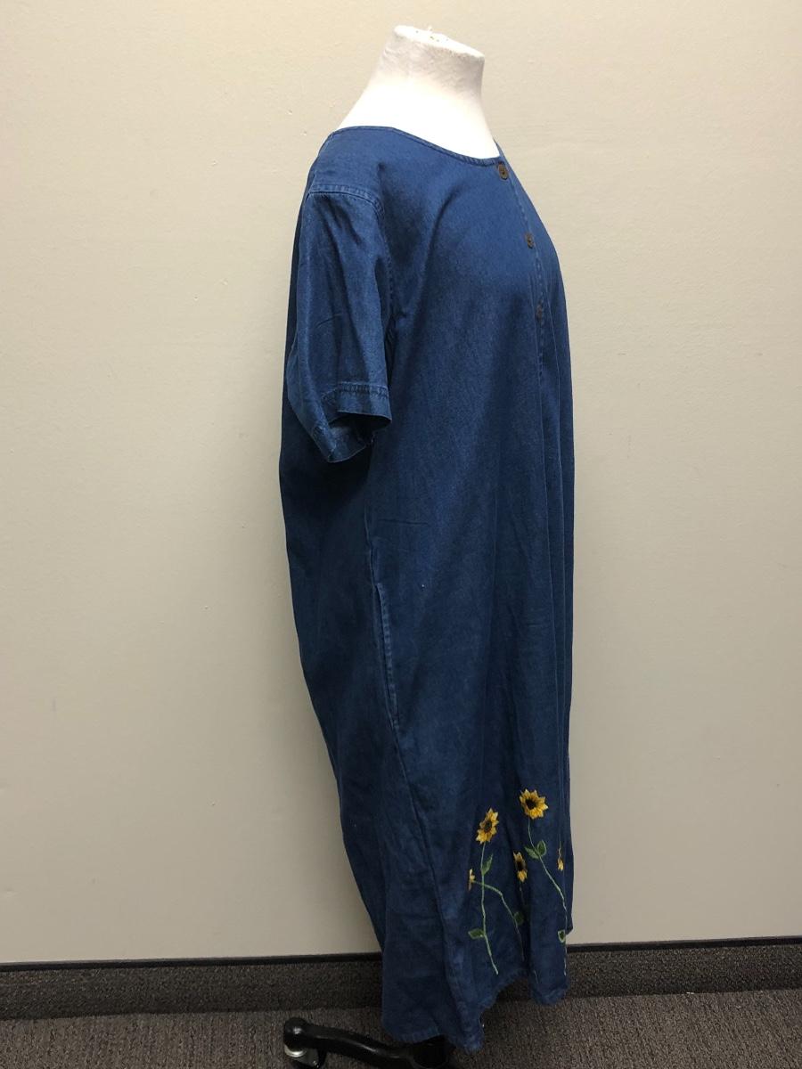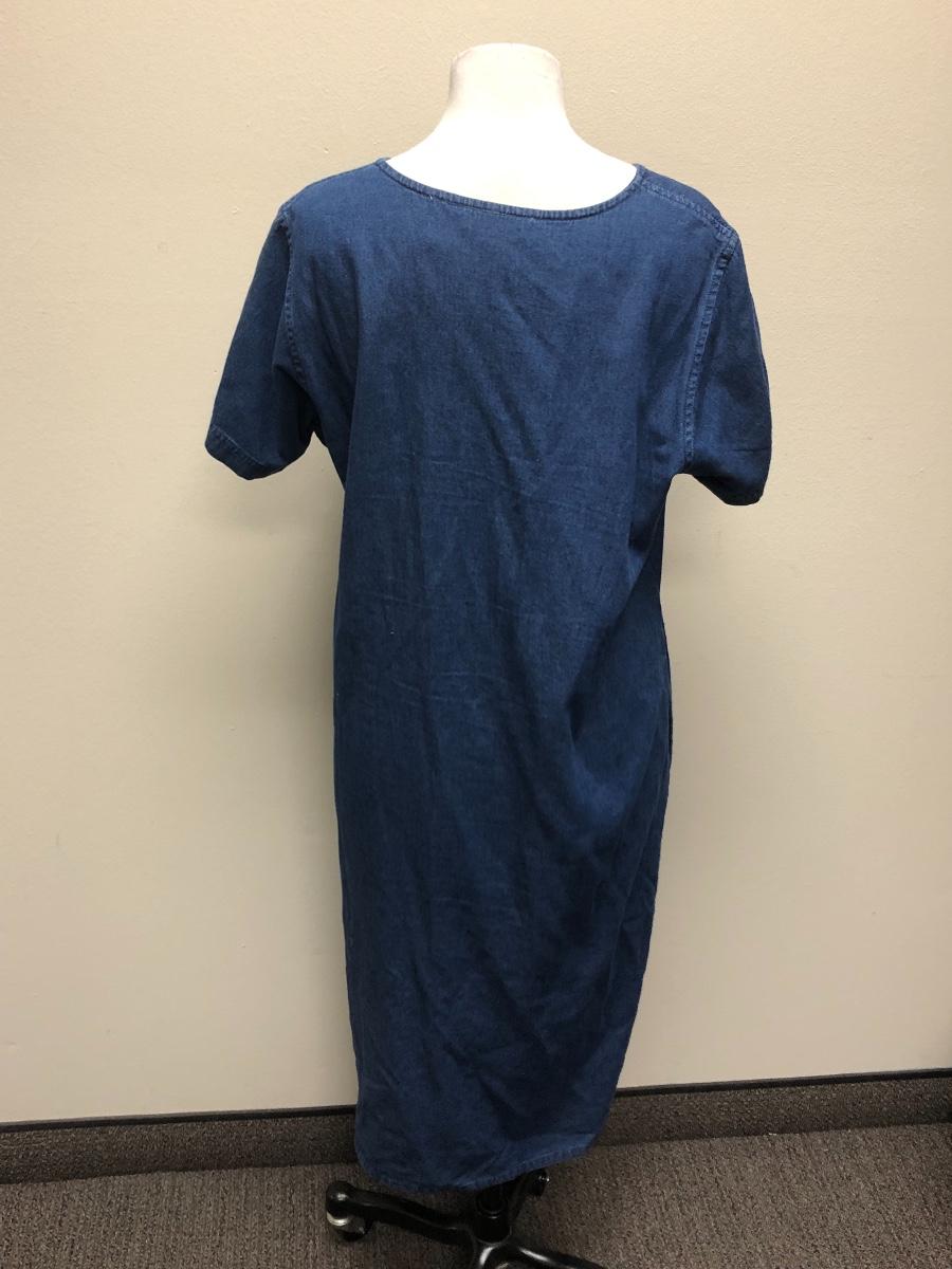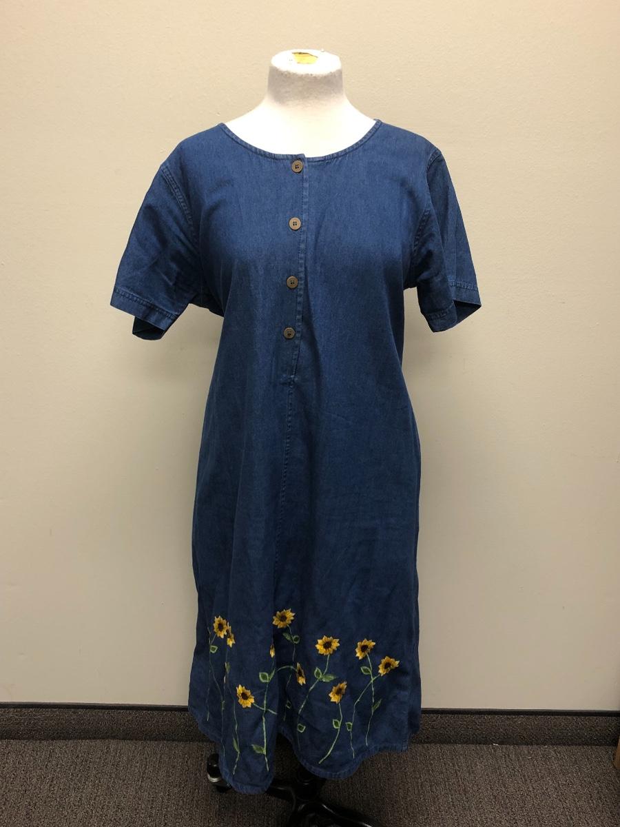 Dress is in great condition. It come in a size large. It was made in India and is made of 100% cotton. The dress comes with two pockets.