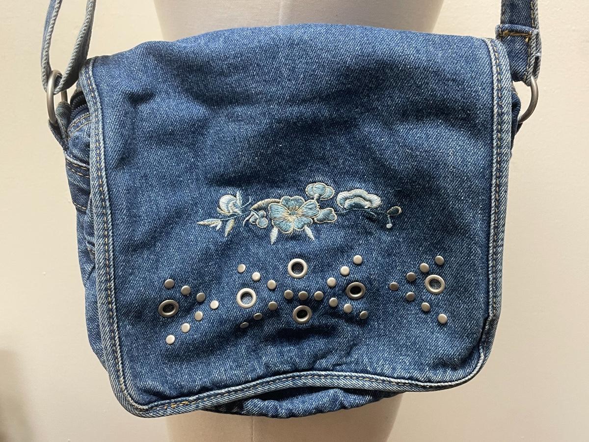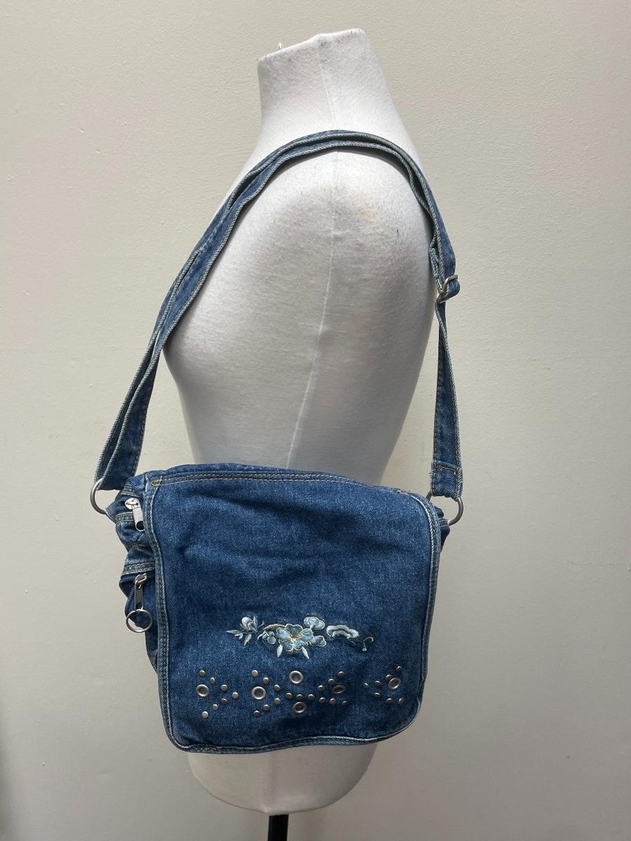 Blue Jean Denim Floral Over the Shoulder Purse Bag
