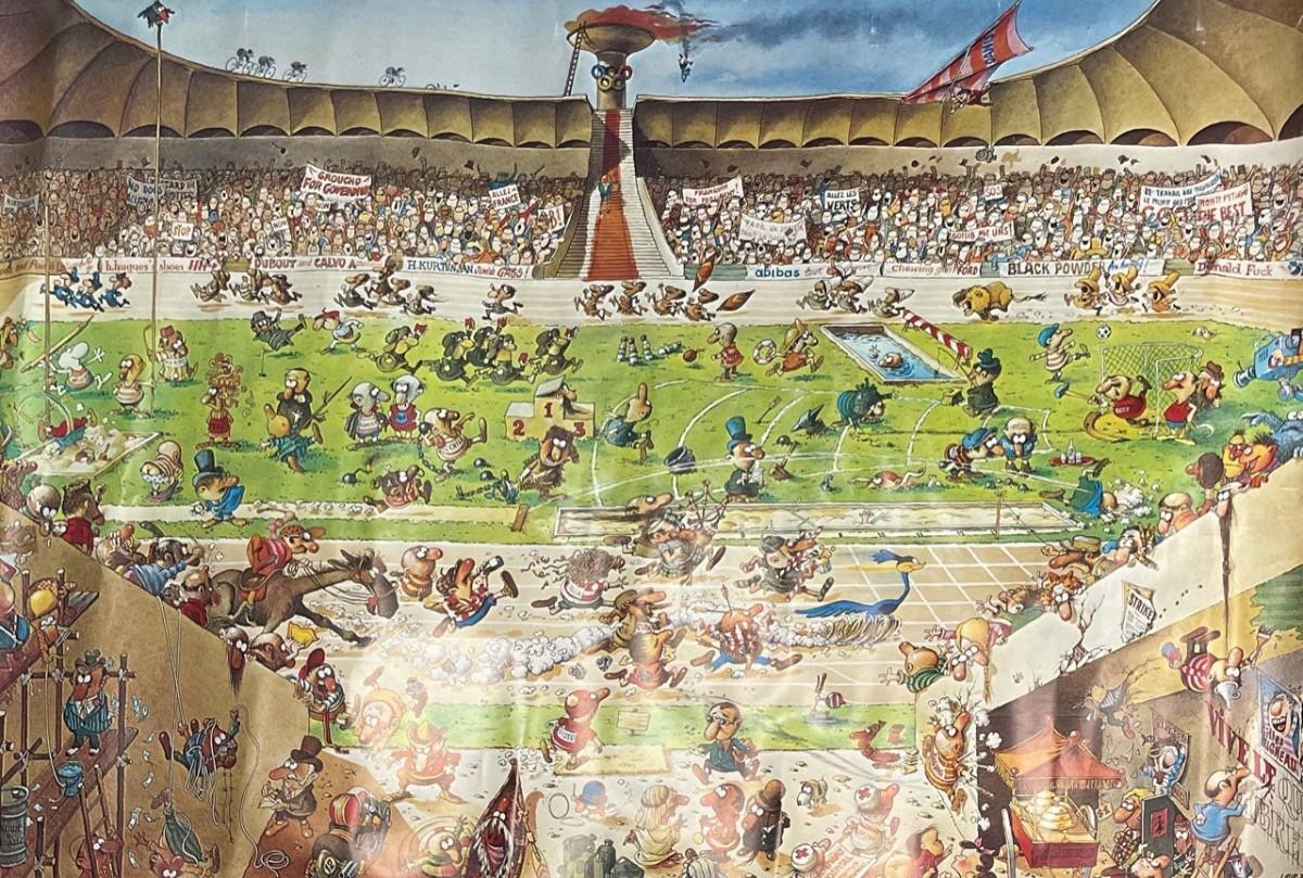 Description: 1976 Scandecor OLYMPIC GAMES Poster. Measurement approximate: 27x39. Cartoon artist Jean -Jacques Loup RARE