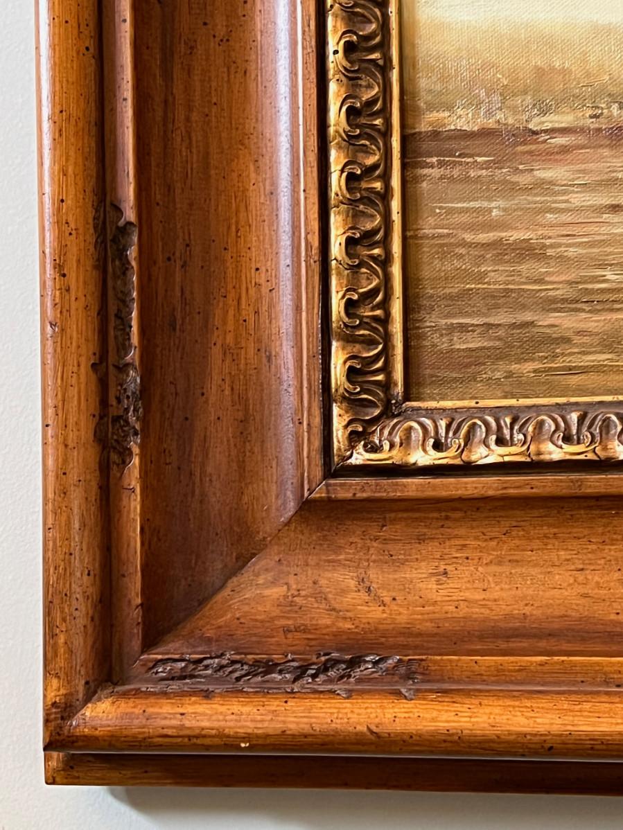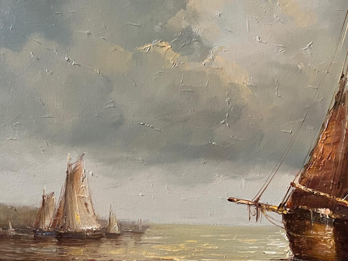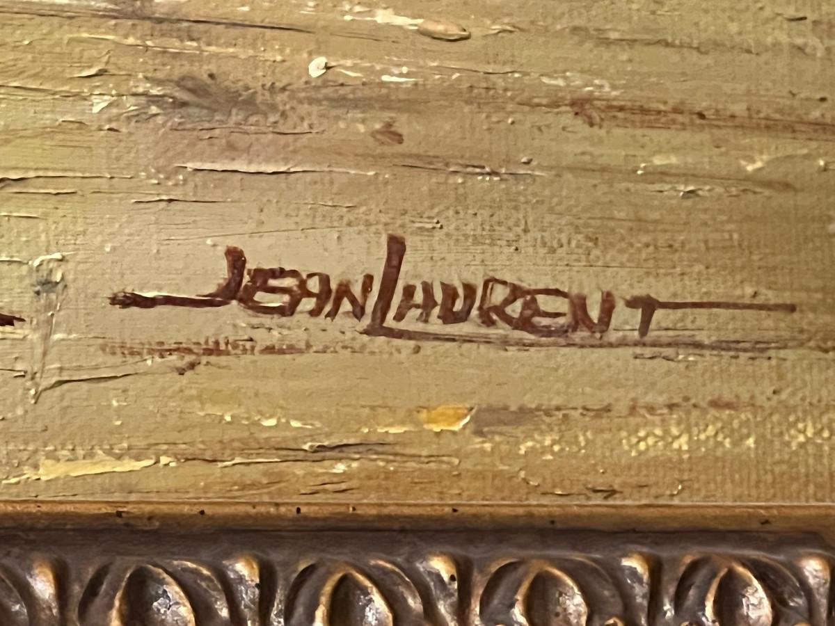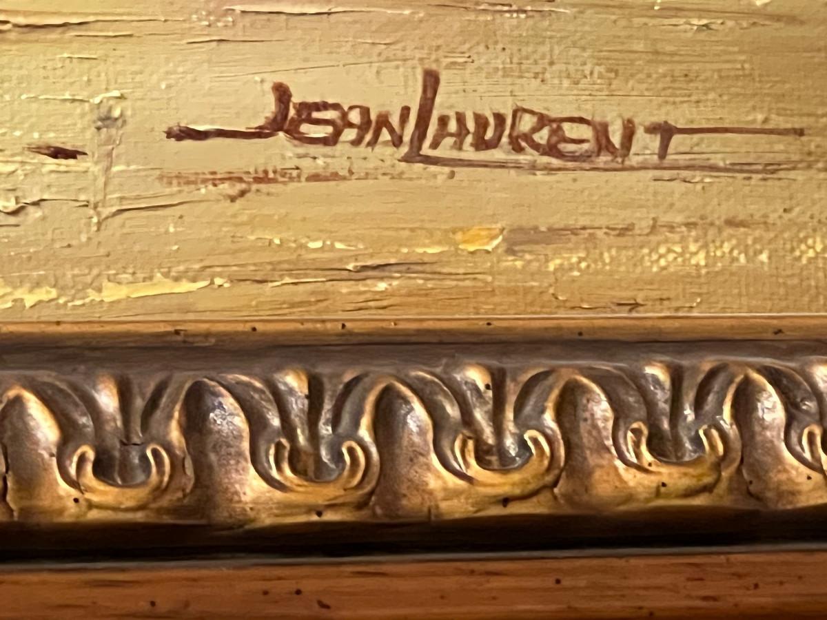 DESCRIPTION: The subject item is a very large, original oil painting on stretched canvas signed, Jean Laurent. The seashore scape features racing sailboats, under full sail, plying the waters parallel to the shoreline.