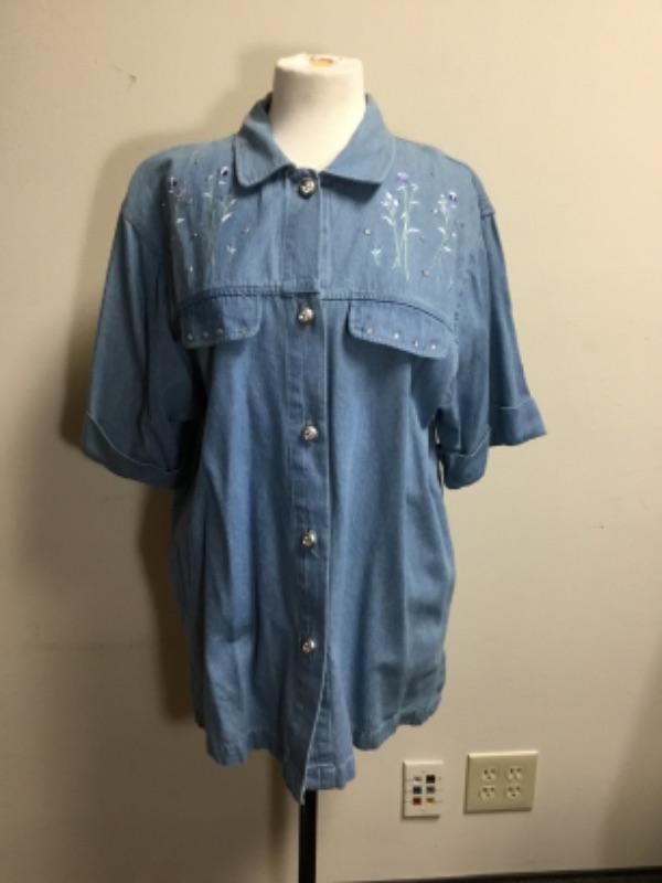 vintage jean blouse button up by Jacklyn Smith Sport, size M medium embroidered