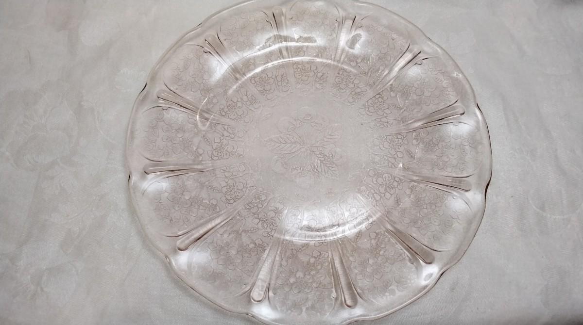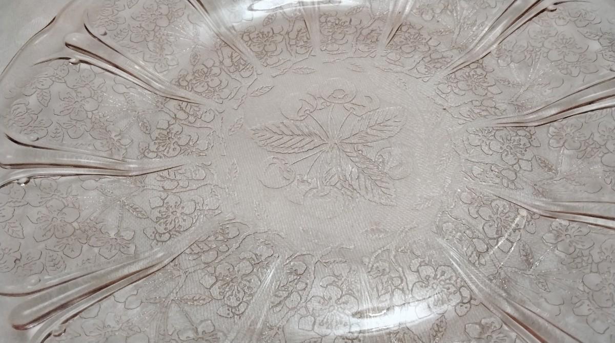 Jeanette Cherry Blossom Plate Depression Glass Circa 1930 9"