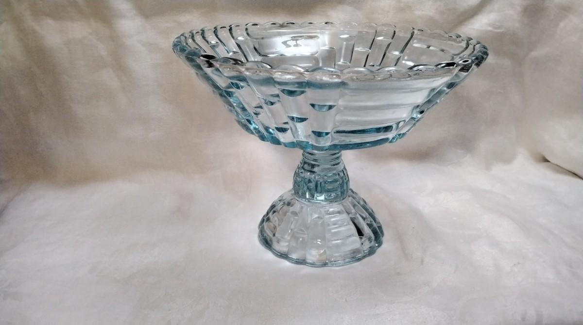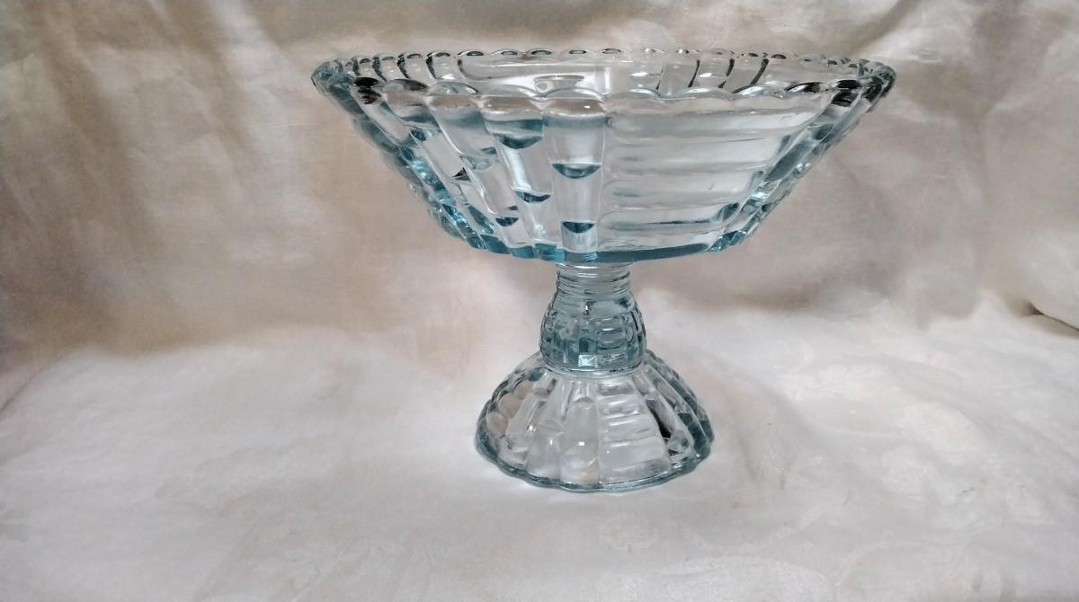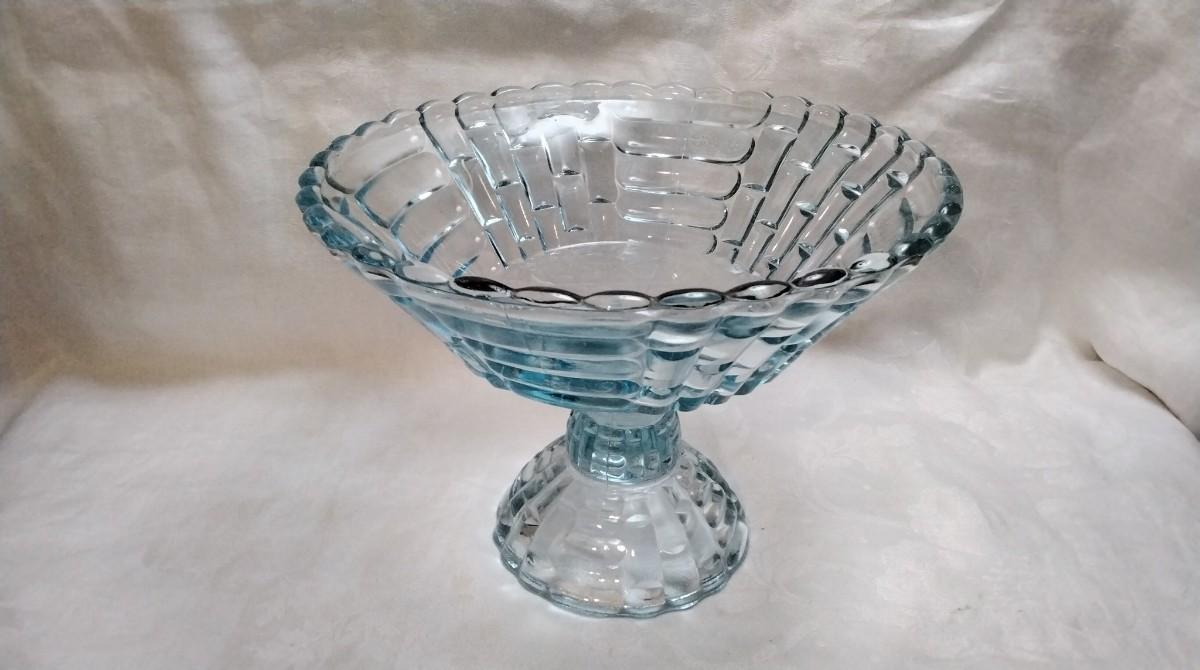 Jeanette Glass Teal Fruit Bowl in Louisa Pattern 1940s