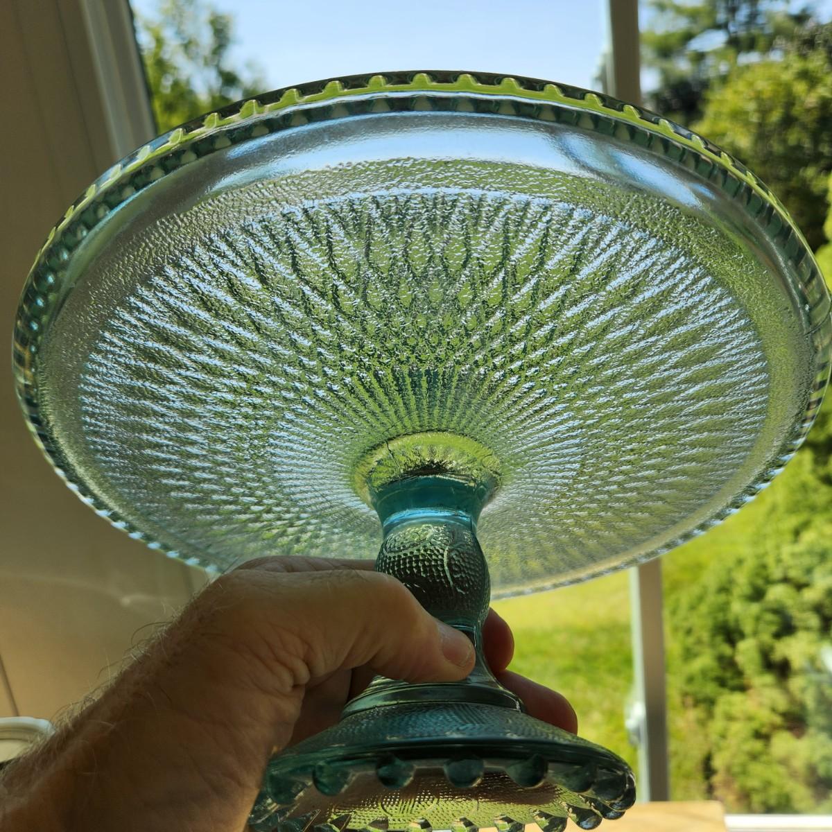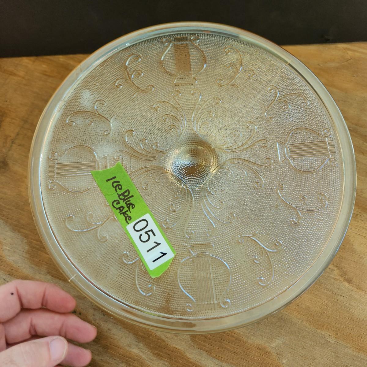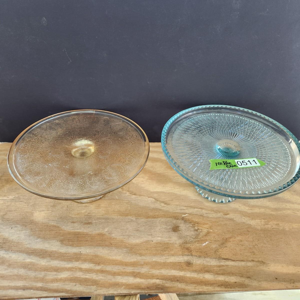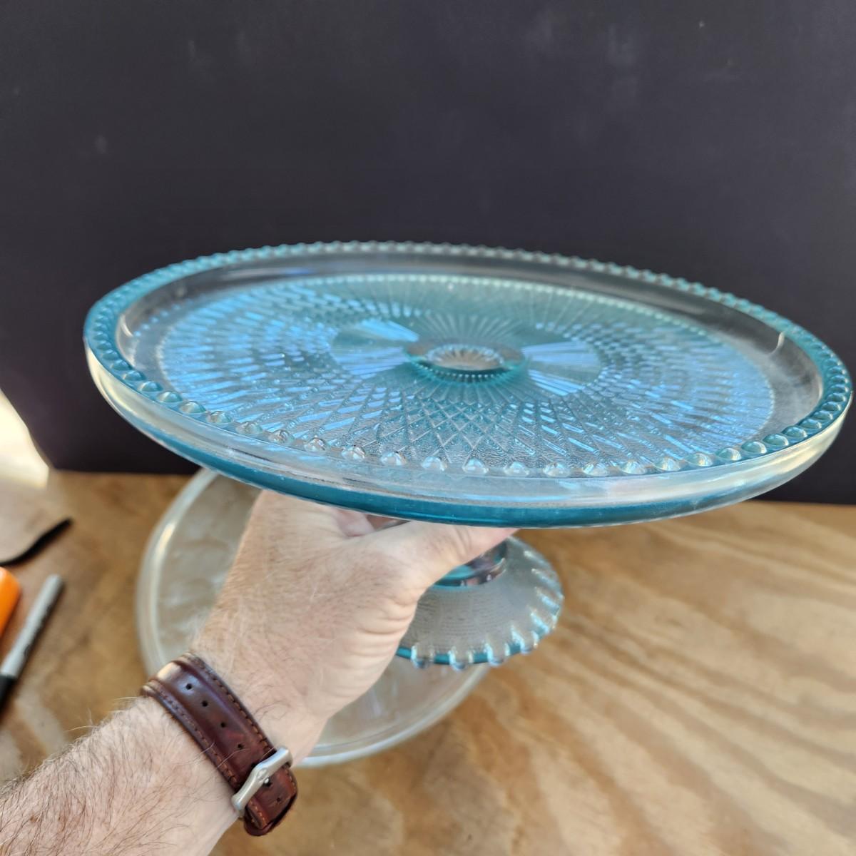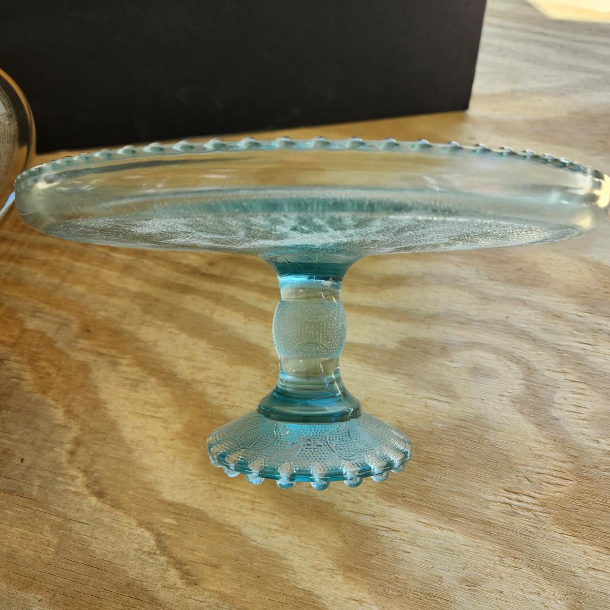 Jeanette Ice Blue Cake Plate Pedestal & 1 Amber Pedestal