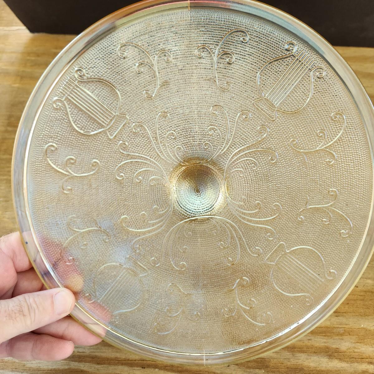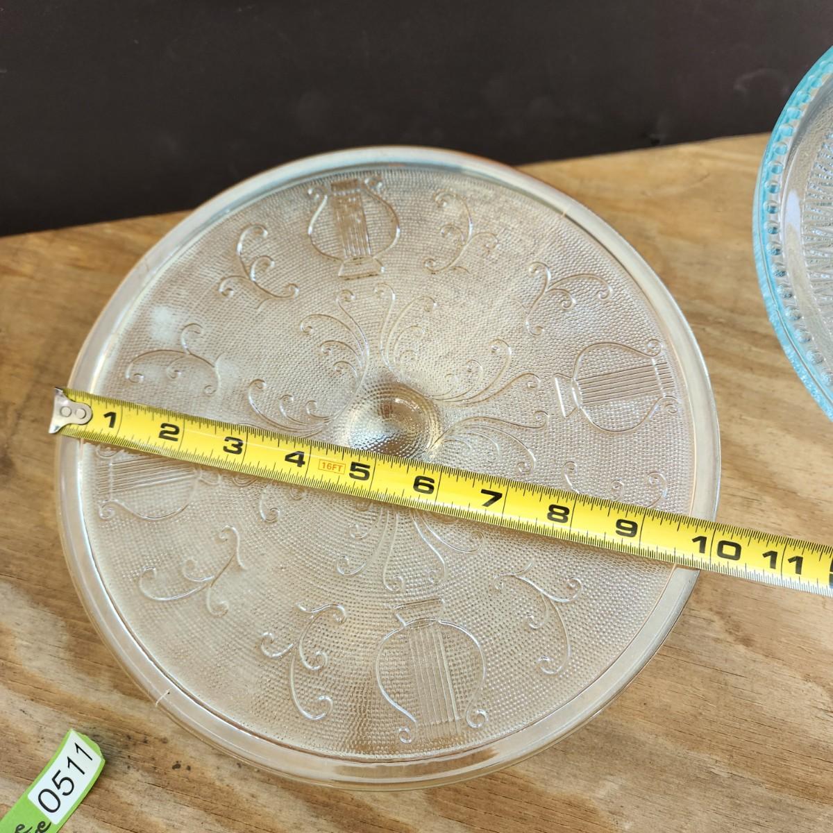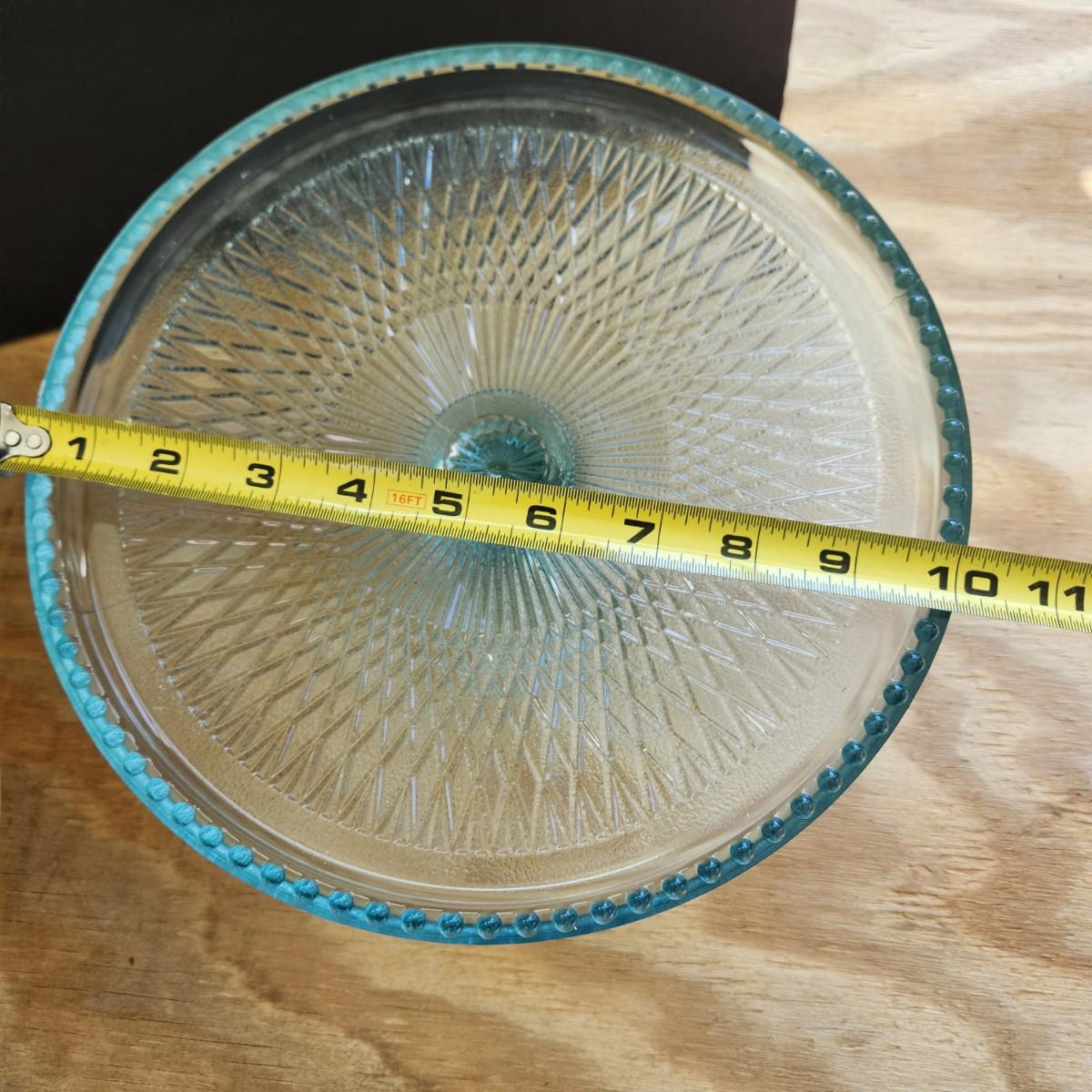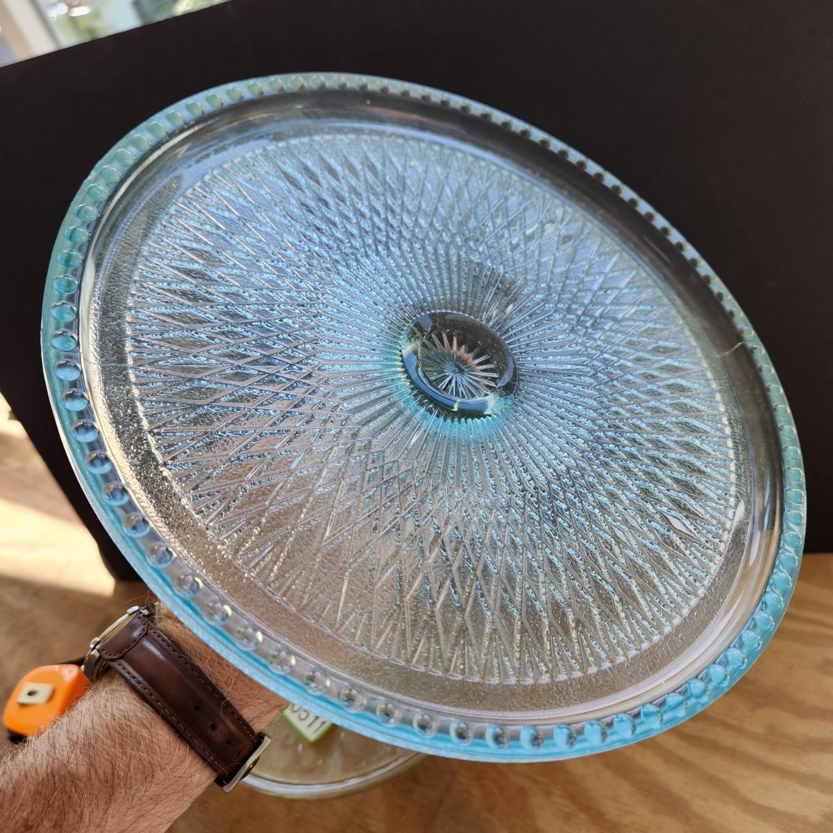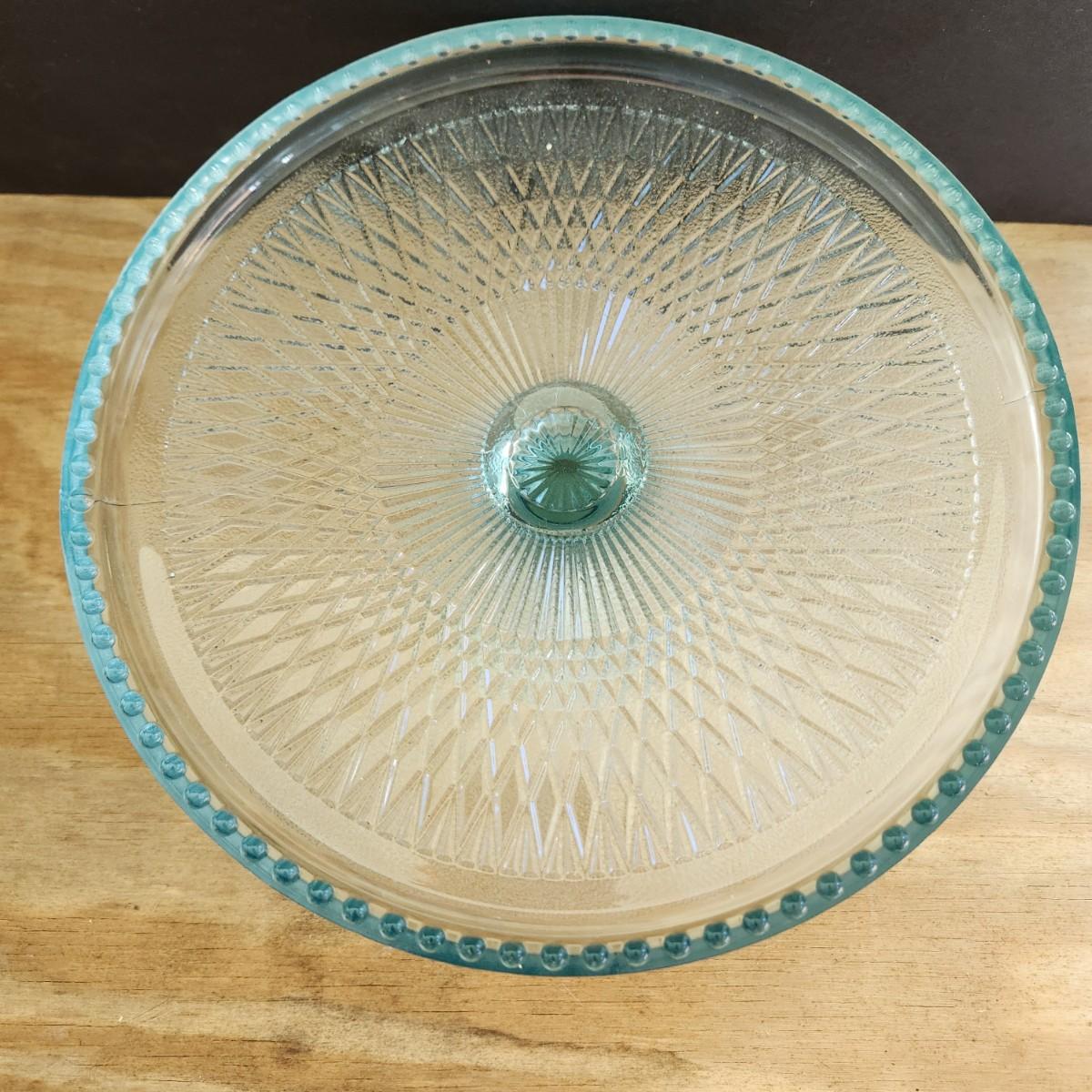 Jeanette Ice Blue Cake Plate Pedestal & 1 Amber Pedestal