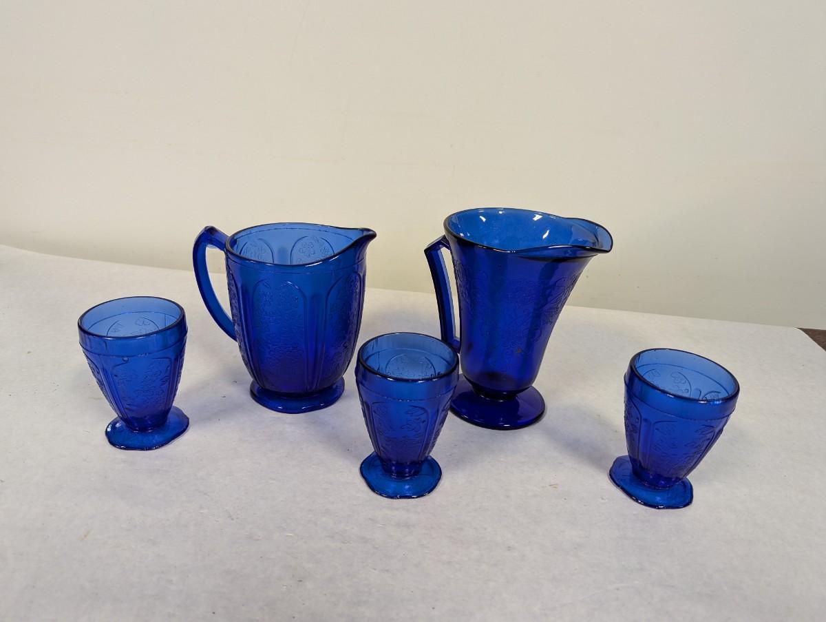 Jeannette Glass Cobalt Blue Pitchers & Glasses