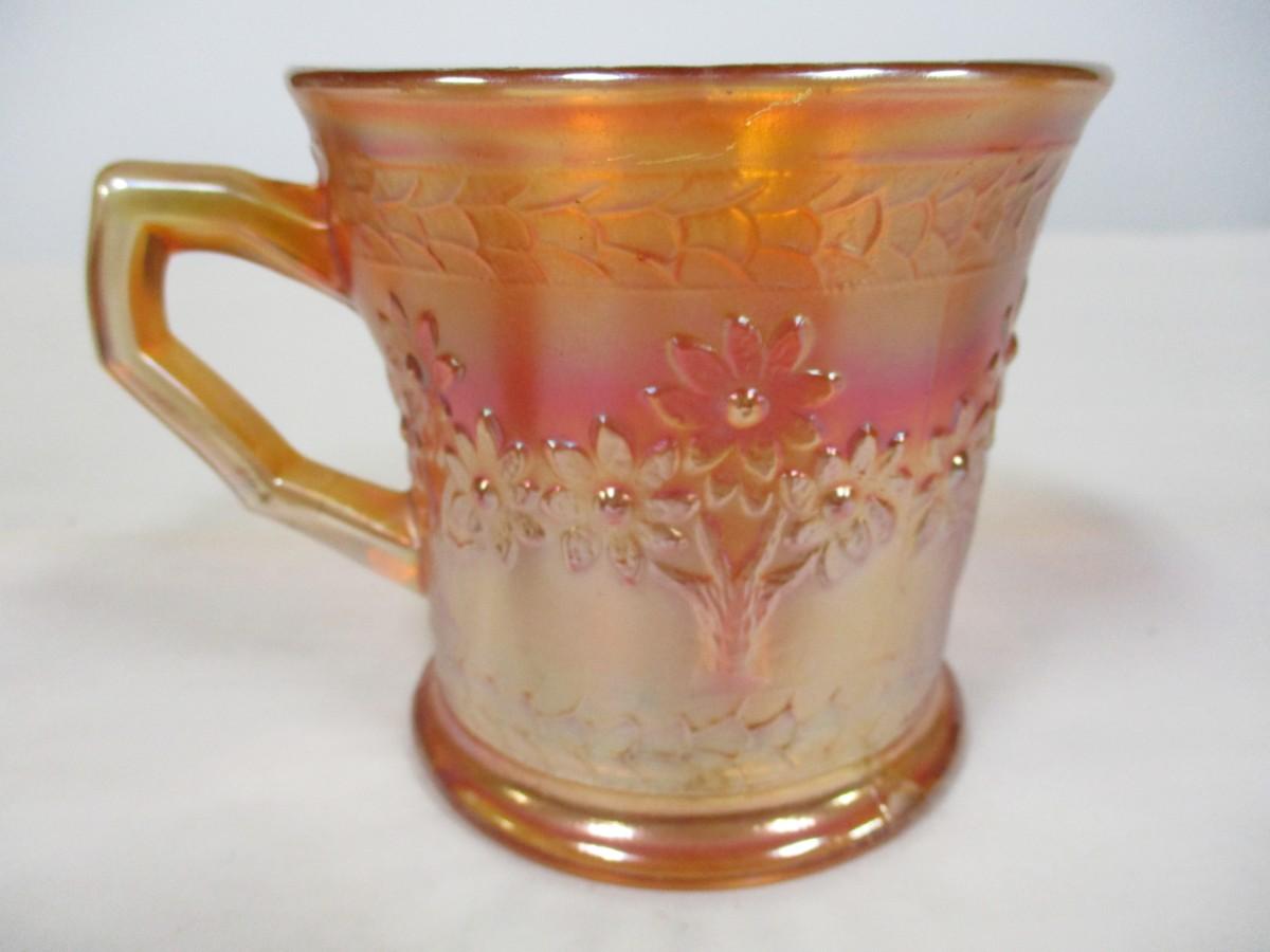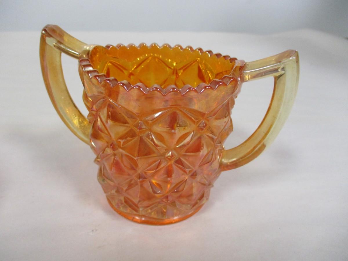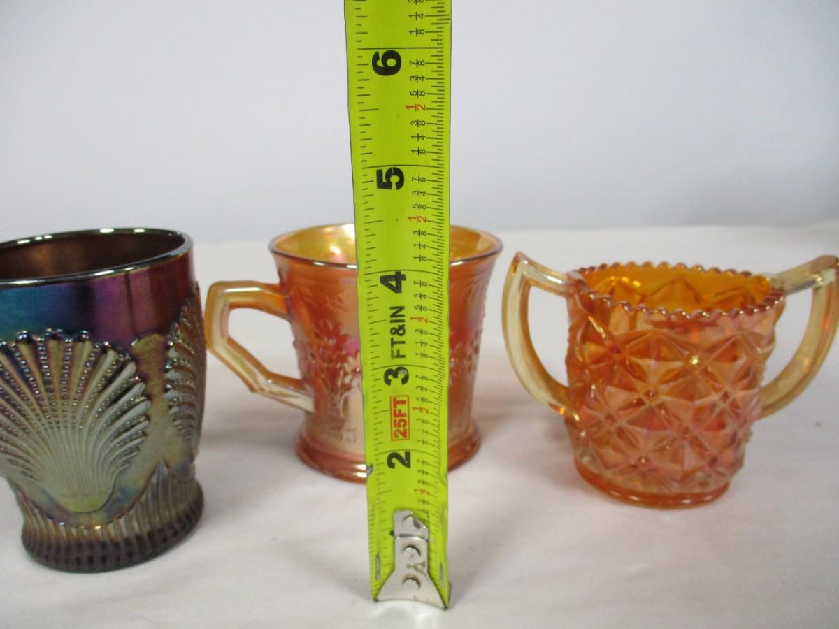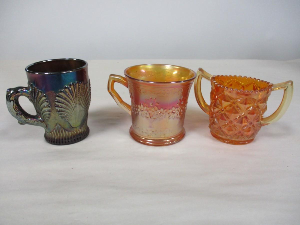 Jeannette Glass Sugar Bowl Fenton Marigold Tree Mug Dugan Beaded Shell Mug