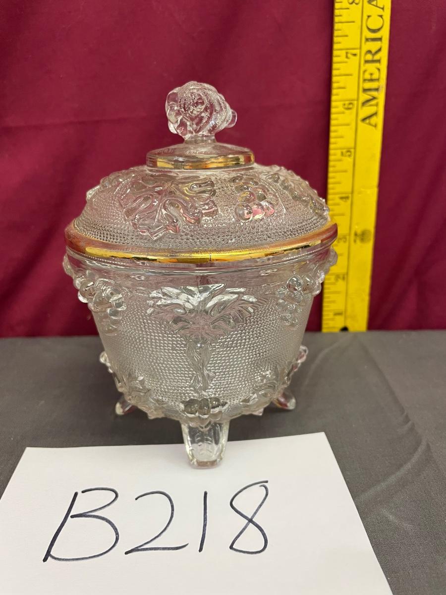 Jeannette grape & leaf glass footed candy dish