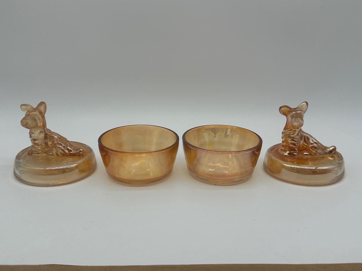 Jeannette Marigold Carnival Glass Scottie Dog Covered Dishes