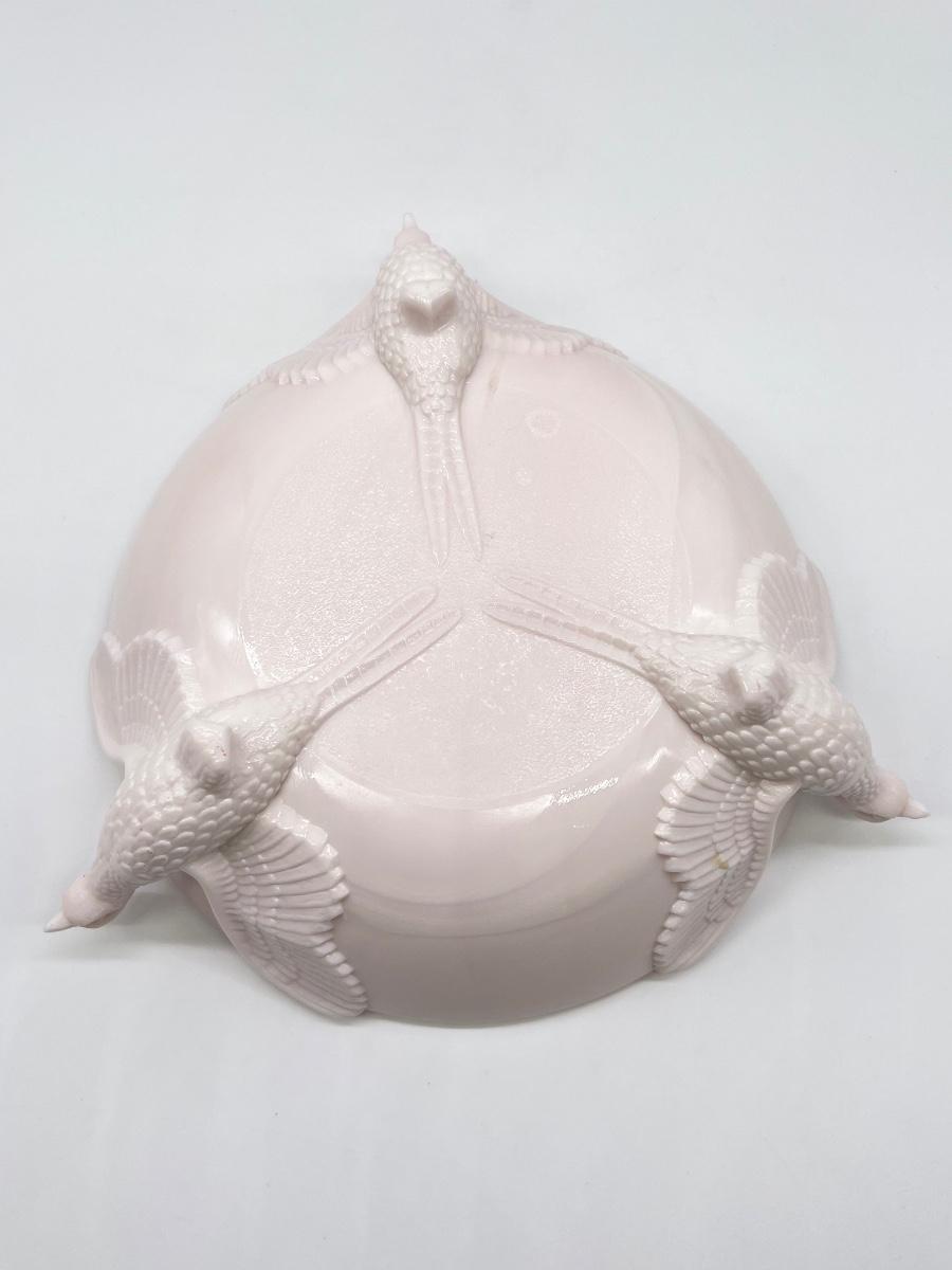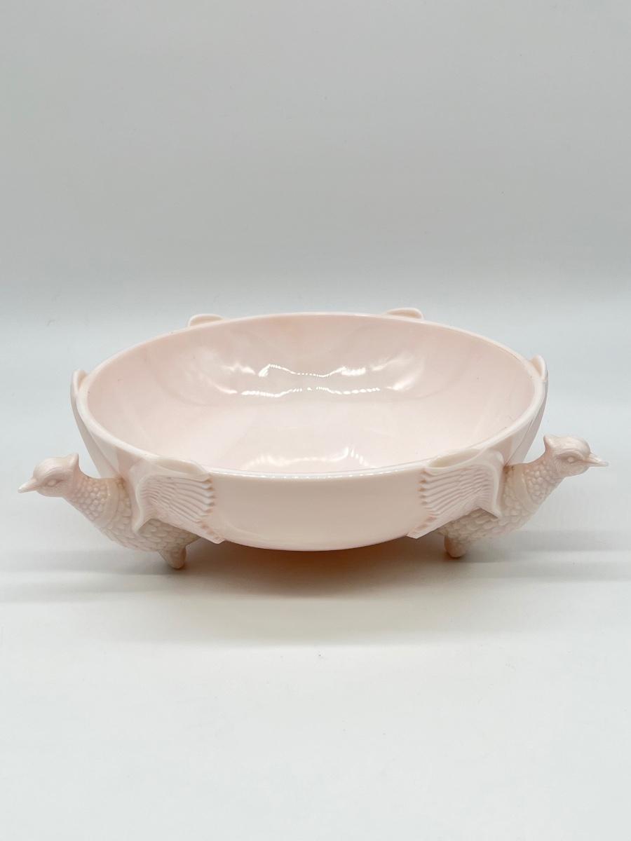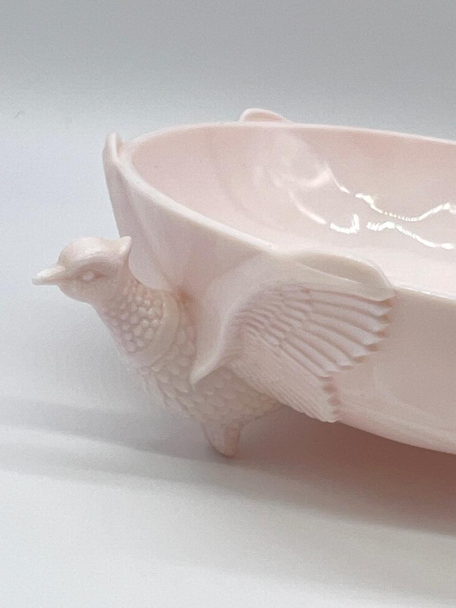 Jeannette Milk Glass ~ Pale Pink Footed Pheasant Dish ~ Excellent