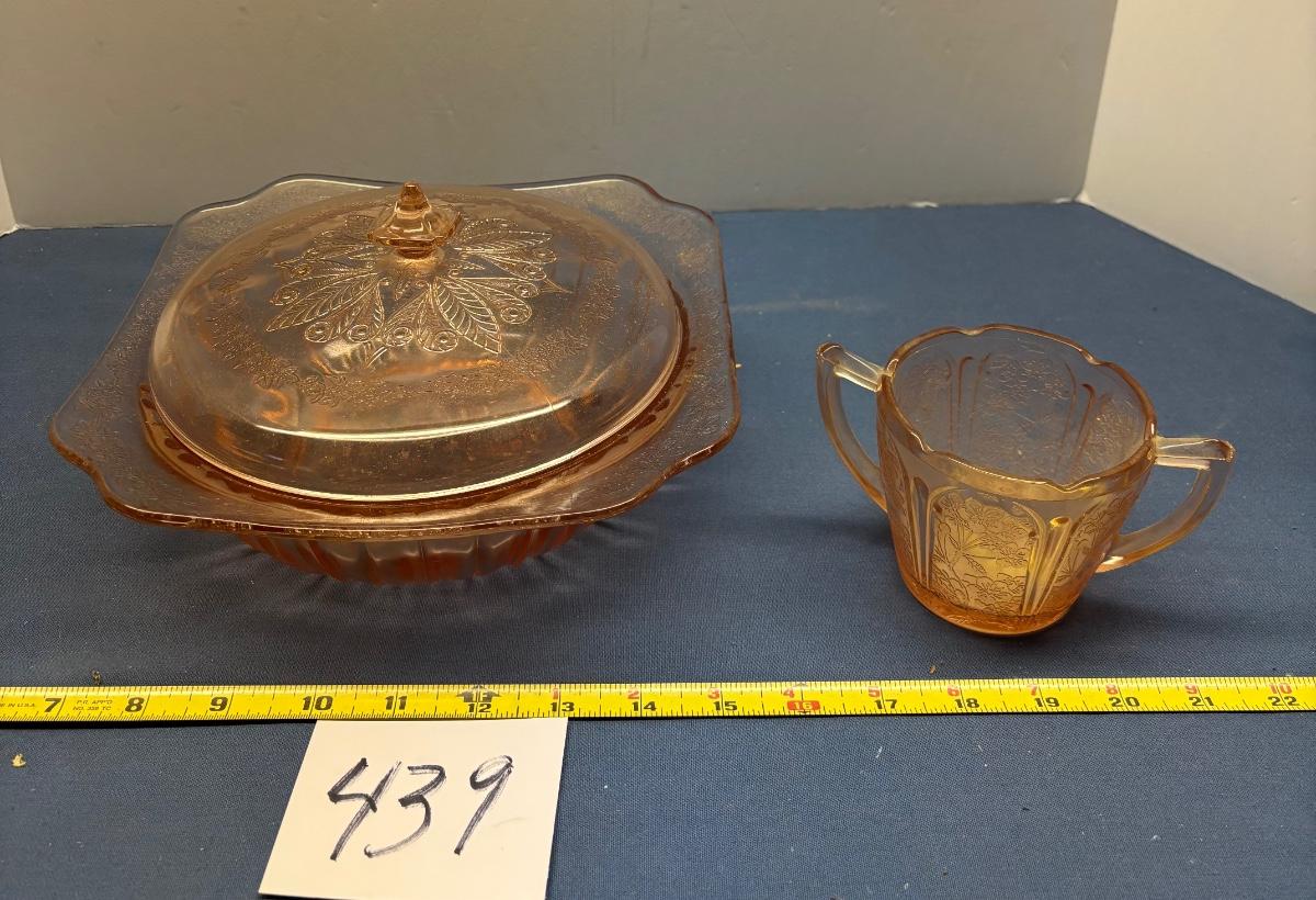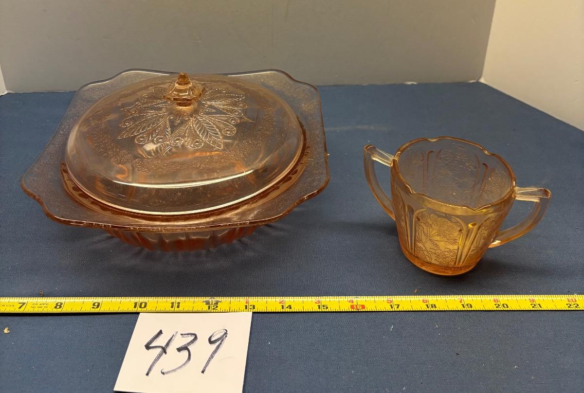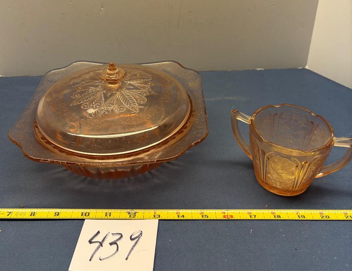 Jeannette Pink 9” Covered Depression Glass Bowl and Creamer
