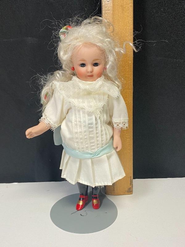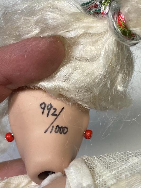 8" Jeannie Di Mauro "Elizabeth Ann" doll. Limited edition #992/1000. Unfortunately she is missing her hat. Comes with stand.