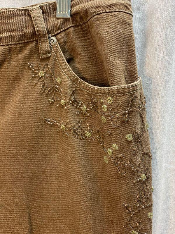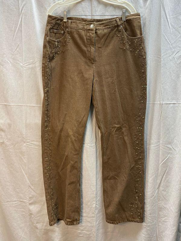Jeanology Collection Beige Bead Embellished Jeans Size 18 YD#020-1220-02069