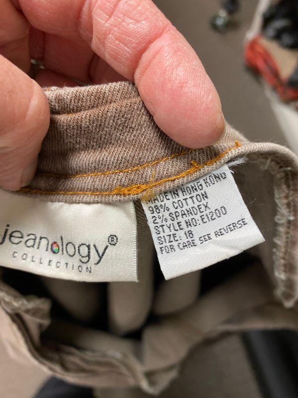 Jeanology Collection jeggings. Light tan. No pockets, side zipper. Size 18. Good condition.