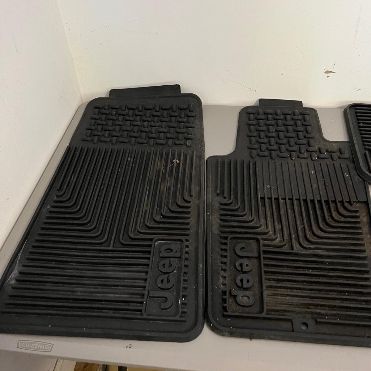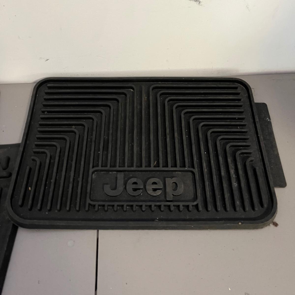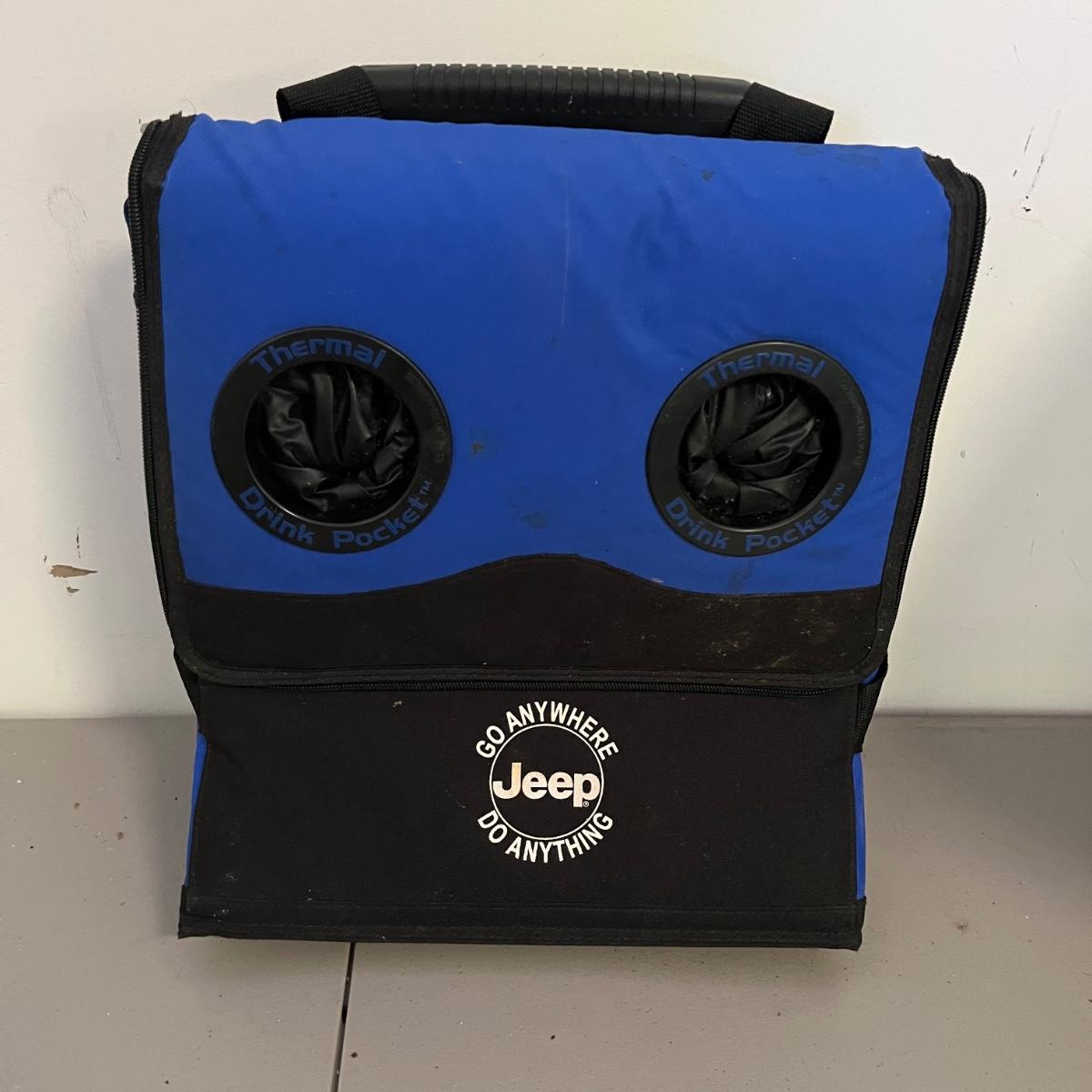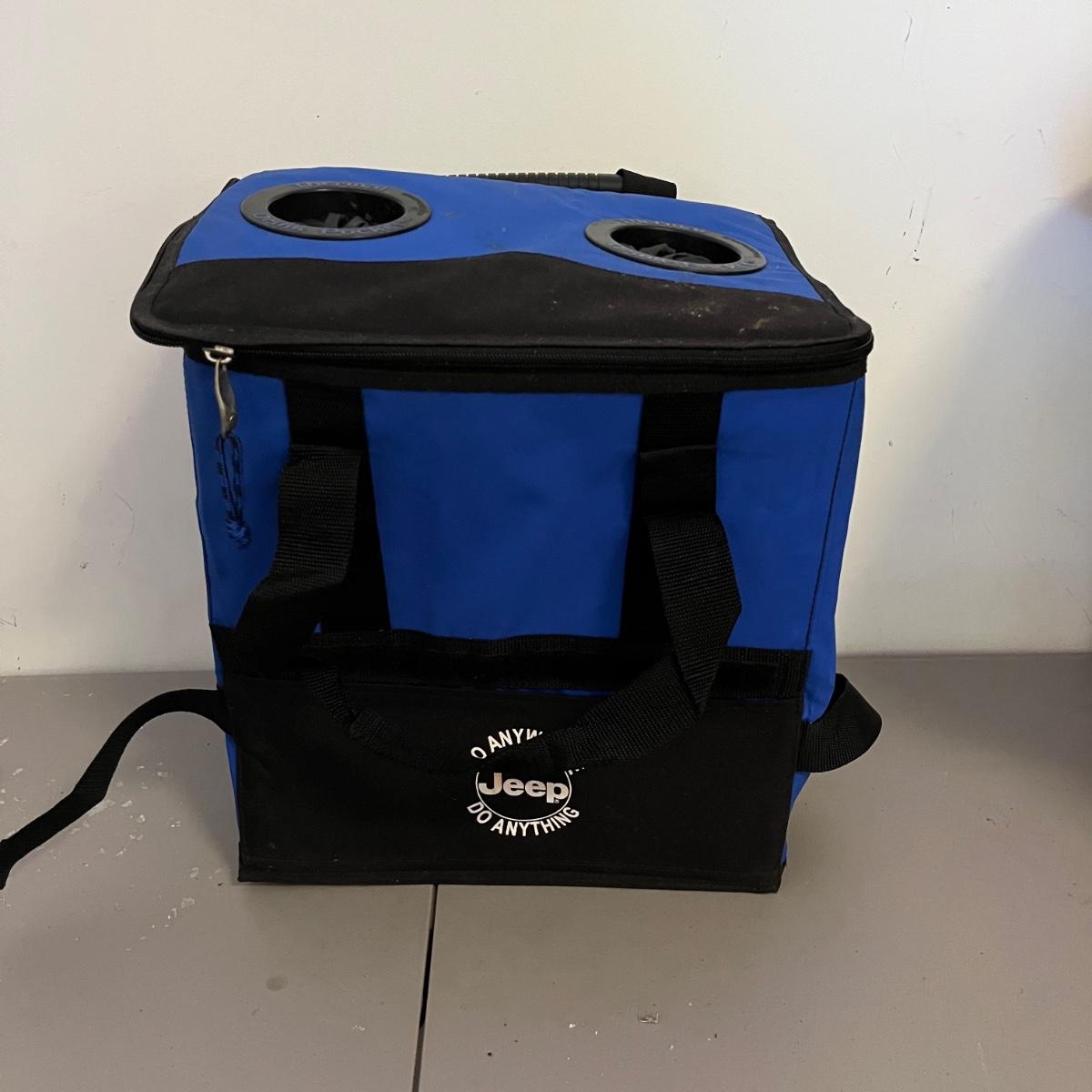 Lot includes three Jeep rubber floor mats, Air Stream 7 gallon air tank, Jeep rolling cooler and a Jeep plastic storage box. That measures 20” x 24” x 8”.