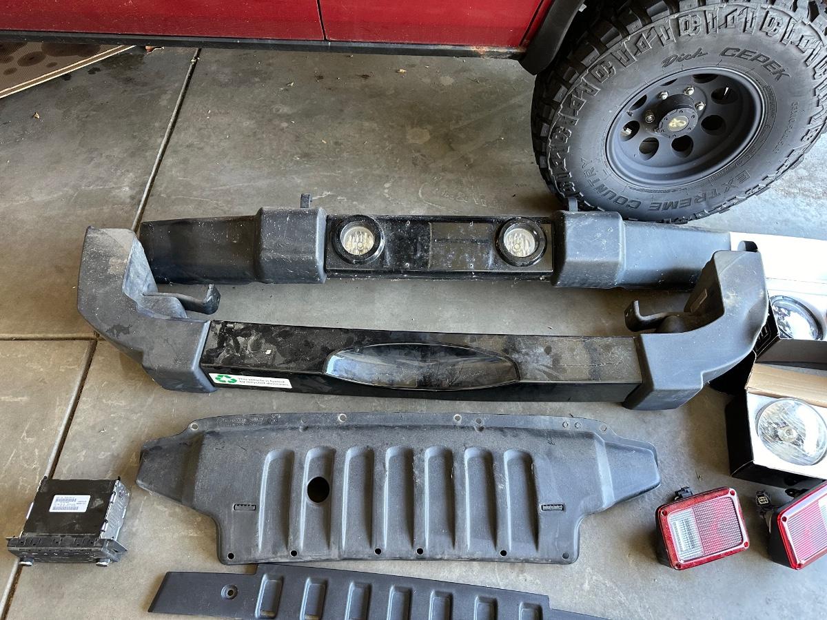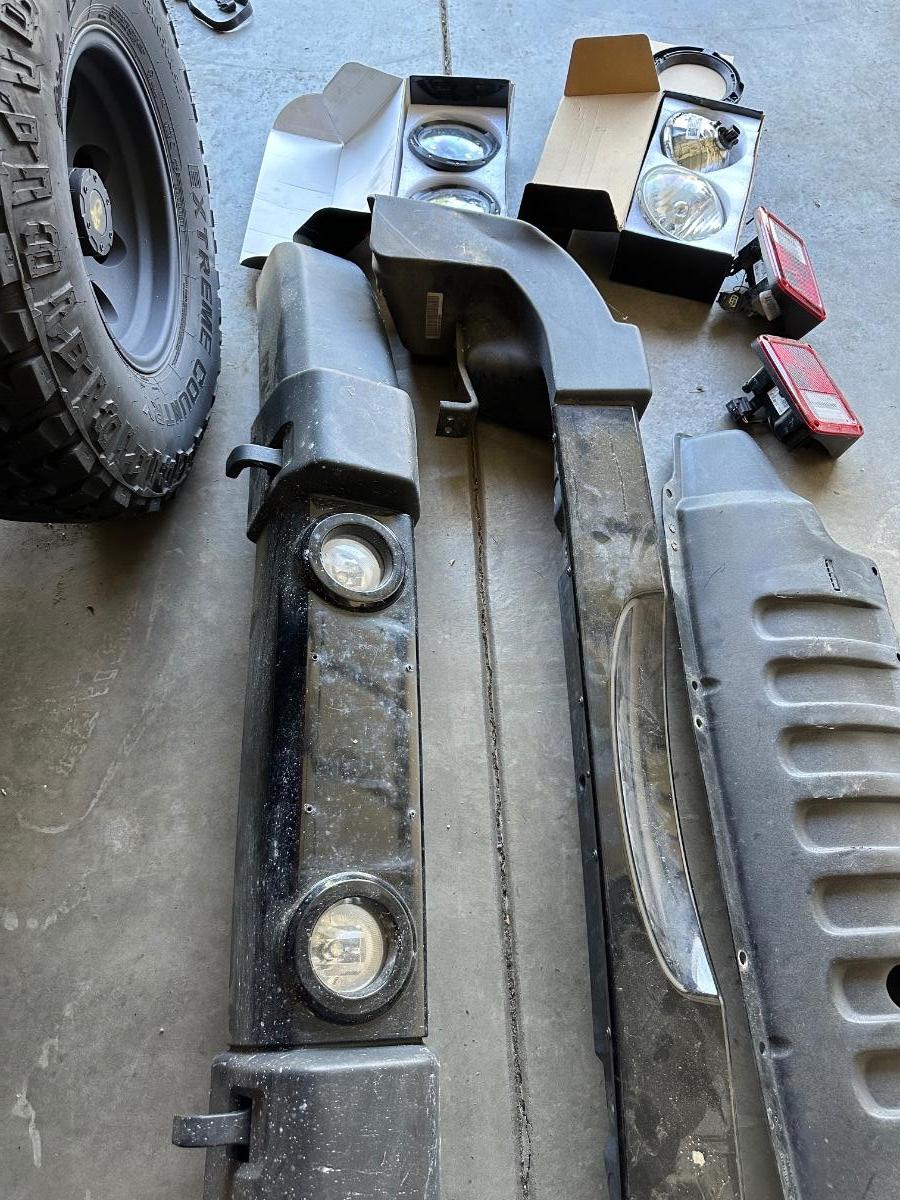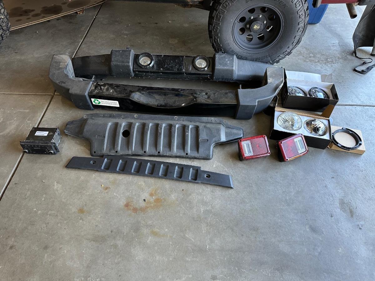 JEEP FRONT AND REAR BUMPERS, HEADLIGHTS, BRAKE LIGHTS AND STOCK RADIO