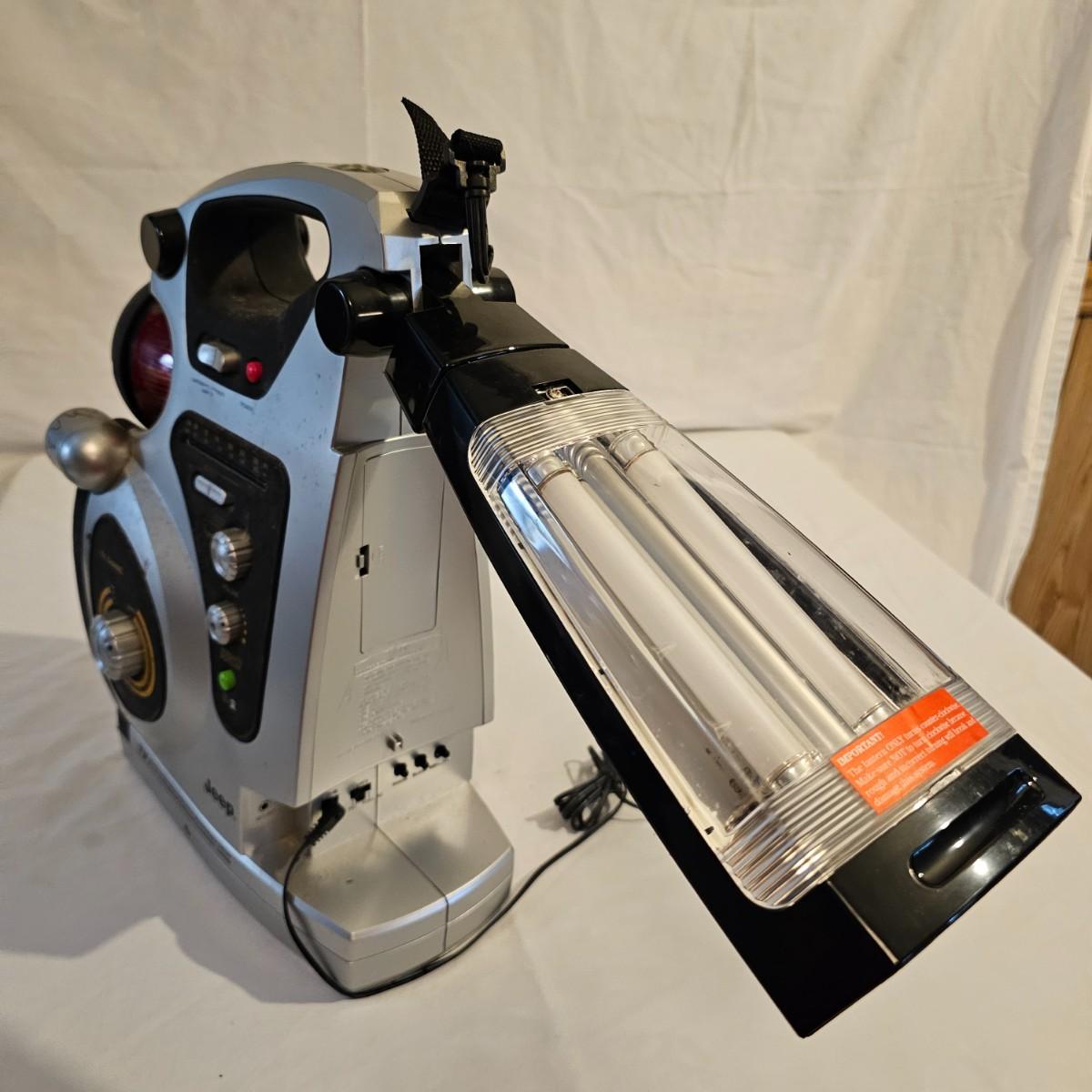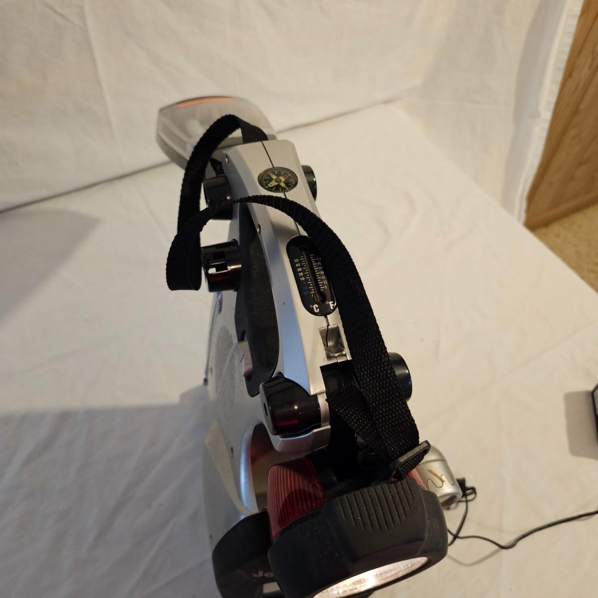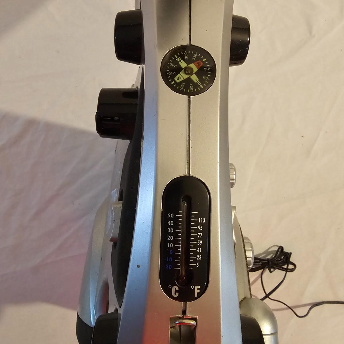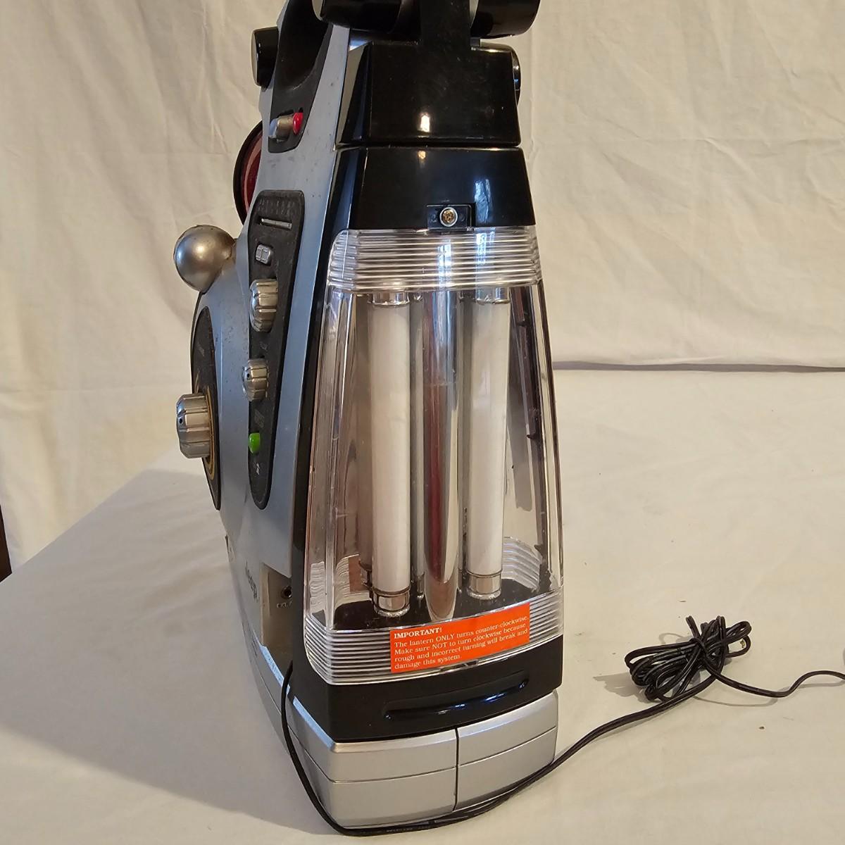 Jeep brand light, radio, lantern, tv and more. Unit has am/fm band, three tv settings, compass, thermometer. Powered by AC or DC and rechargeable battery. Includes both power adapters, unit powered on when plugged into AC, not tested on DC. Carry strap and handle. Unit measures 7" x 11" x 15"H. See photos for details. Shipping available.
