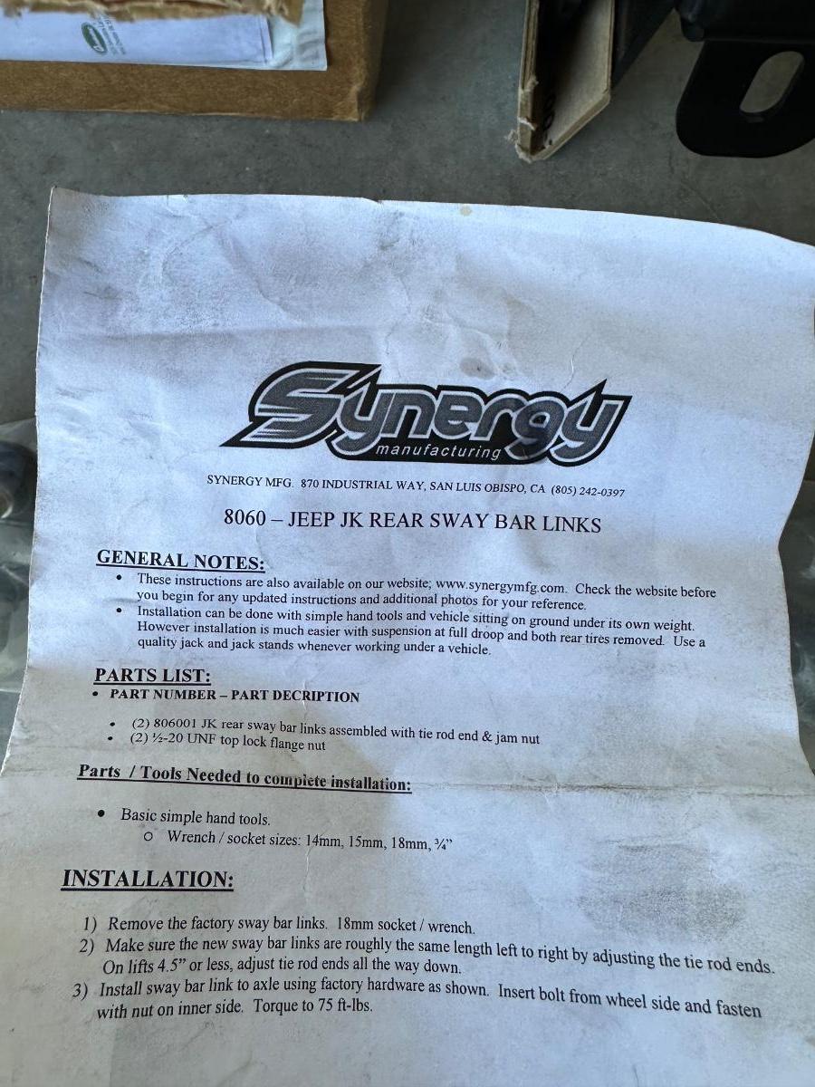 JEEP REAR SWAY BAR LINKS, REAR TRACKBAR TOWER AND HARDWARE