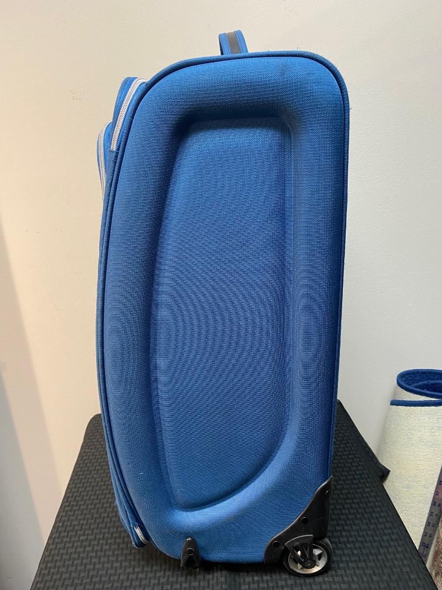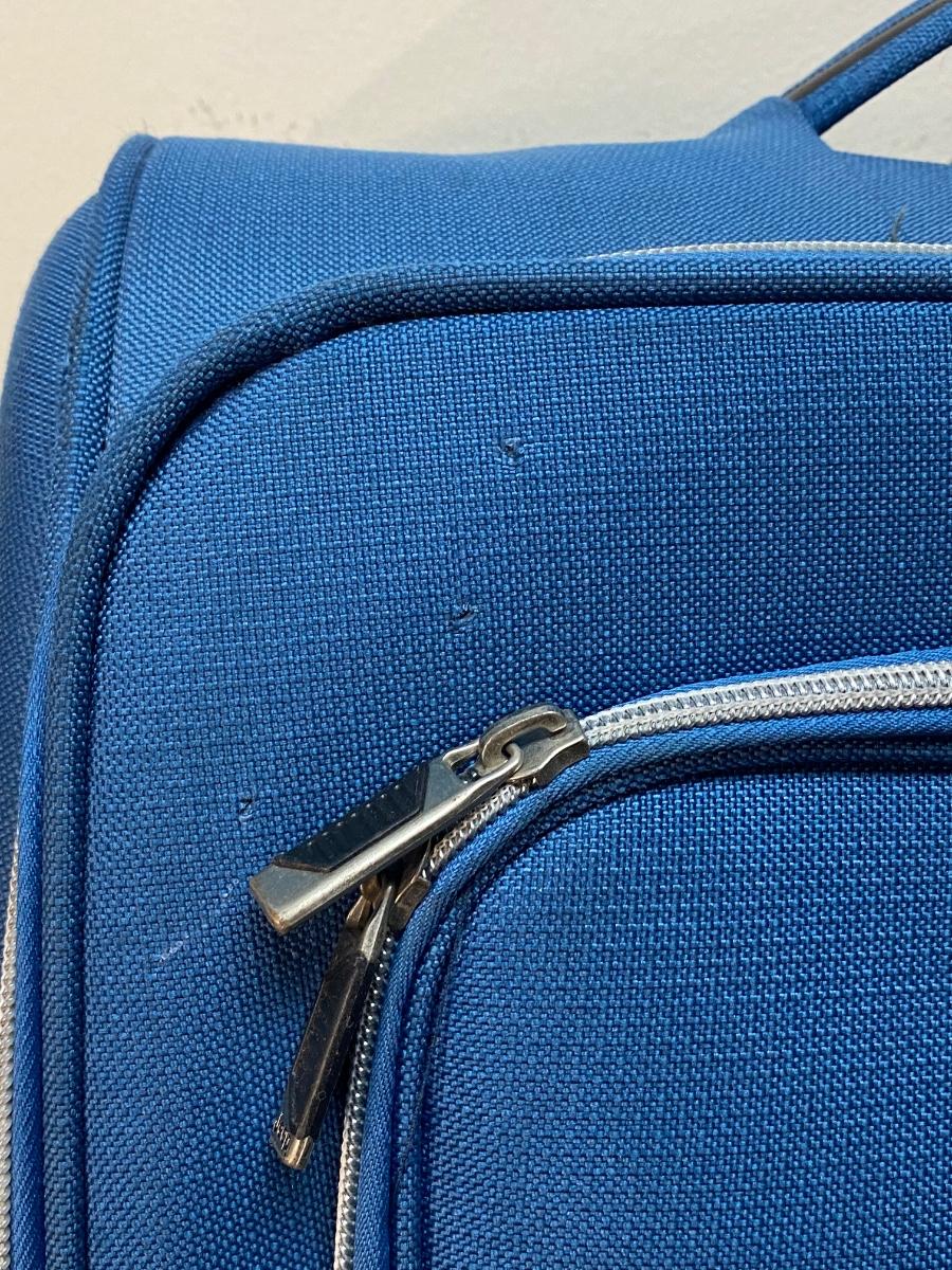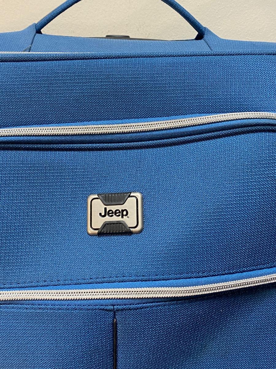 Jeep Rolling Travel Suitcase Luggage, there is some light tearing and discolor on the front of the luggage, but there is no other significant damage to the luggage and is in good useable condition. Check pictures for more details and for sizing.