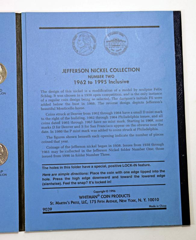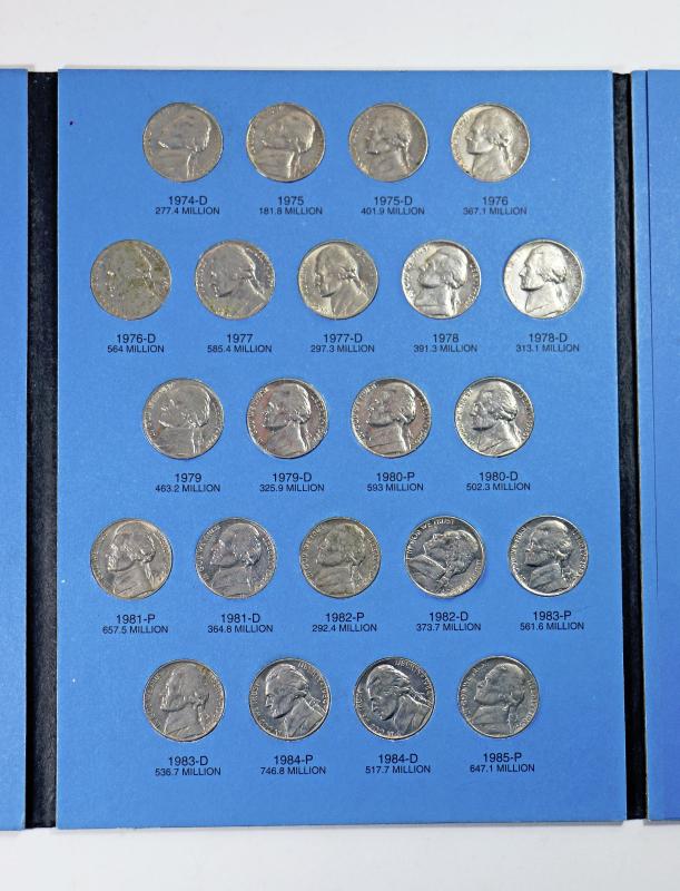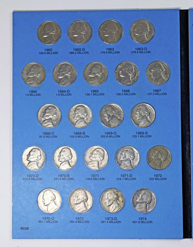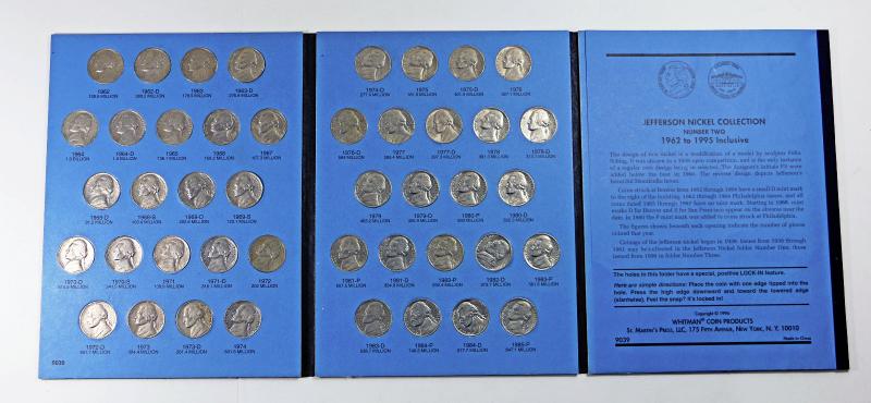 Jefferson Nickles Collection 1962 to 1995 - 65 Coins Set in Book