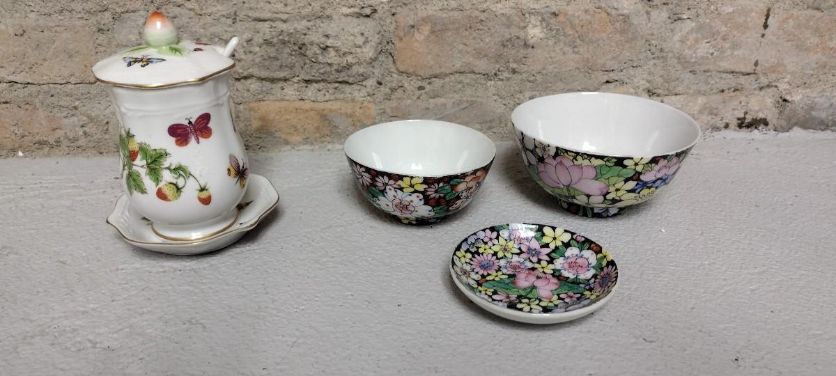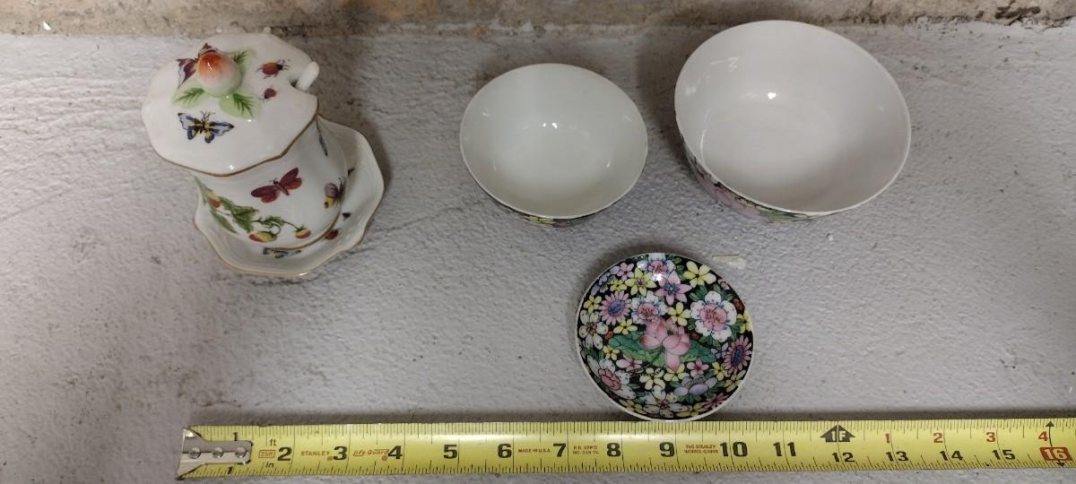 Jelly Jar and Set of 3 Chinoiserie dishes