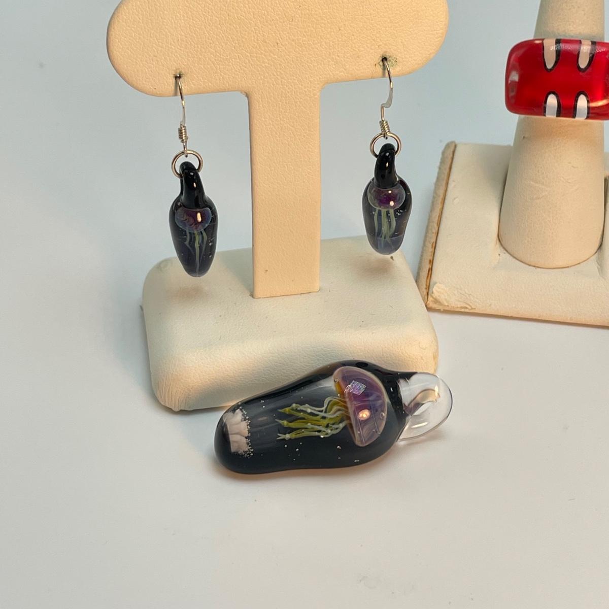 Jellyfish Set, Glass Rings & Earrings (B2-SS)