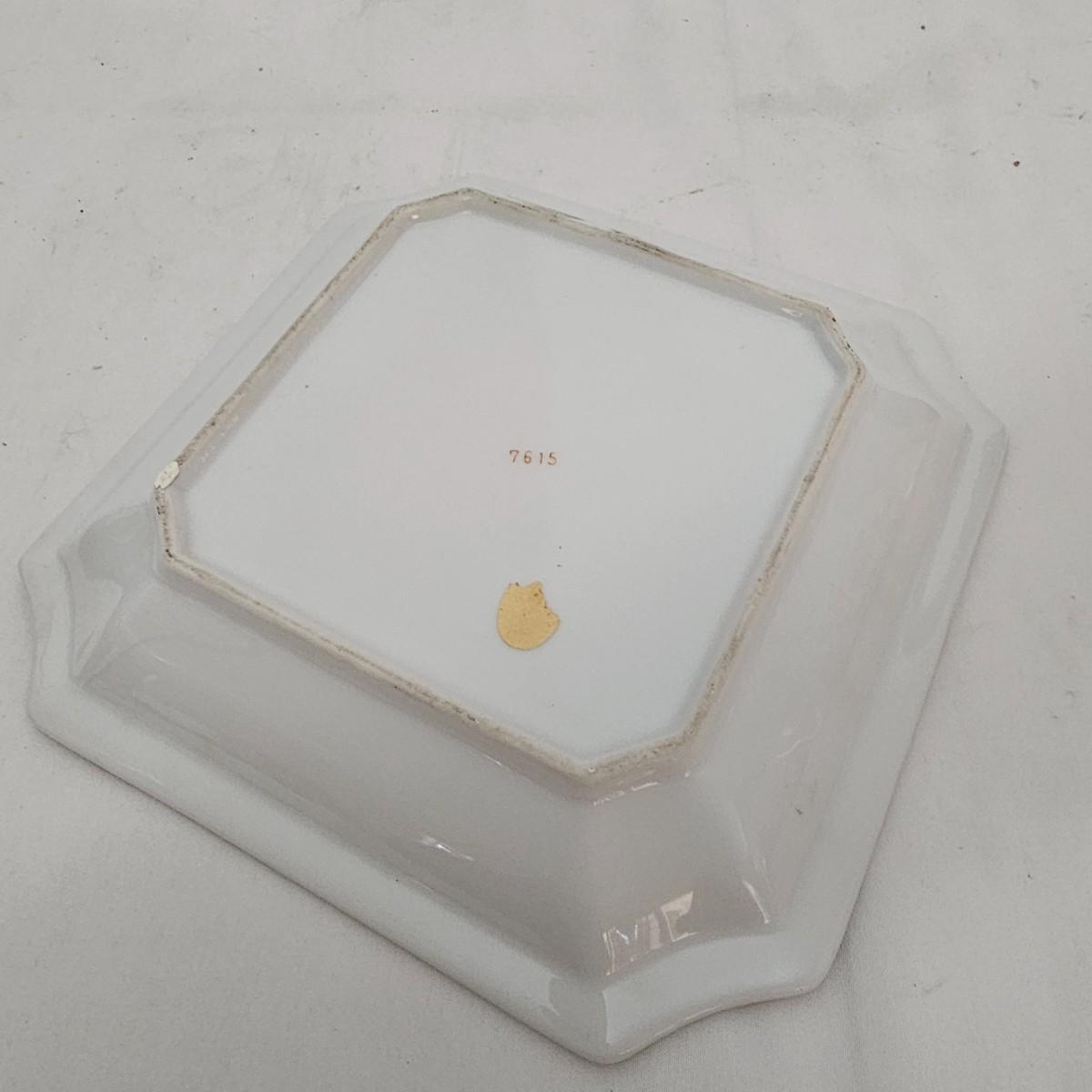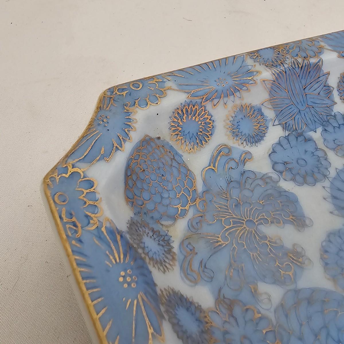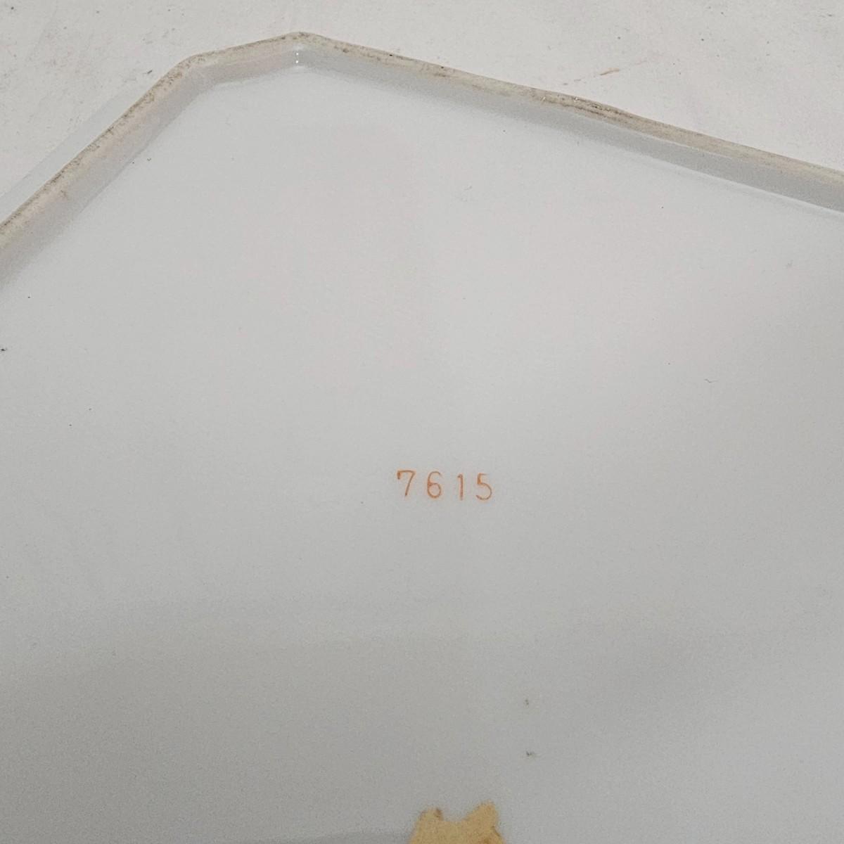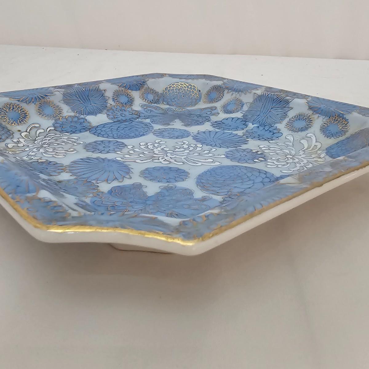 Beautiful turquoise color patterned bowl with lid by Jena Hall, made for Toyo. Bowl measures 7.5"D x 6"H. Gold accented ginger jar and stand are from Japan, measure 4.25"D x 7"H. Flowered plate is 8'SQ. See photos for details. Shipping available.
