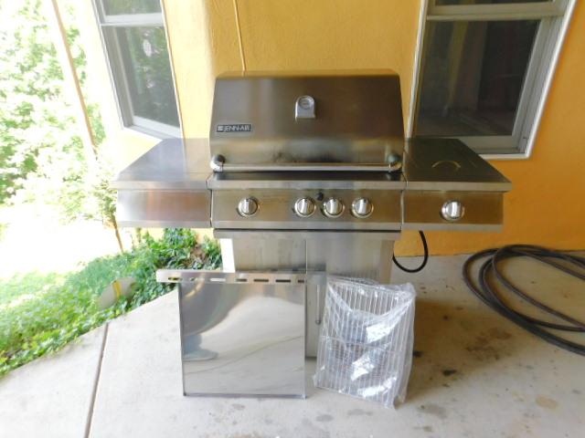 Jenn-Air Gas Outdoor Grill with Side Burner needs cleaning. Is directly connected to house gas line. Will need to disconnect.