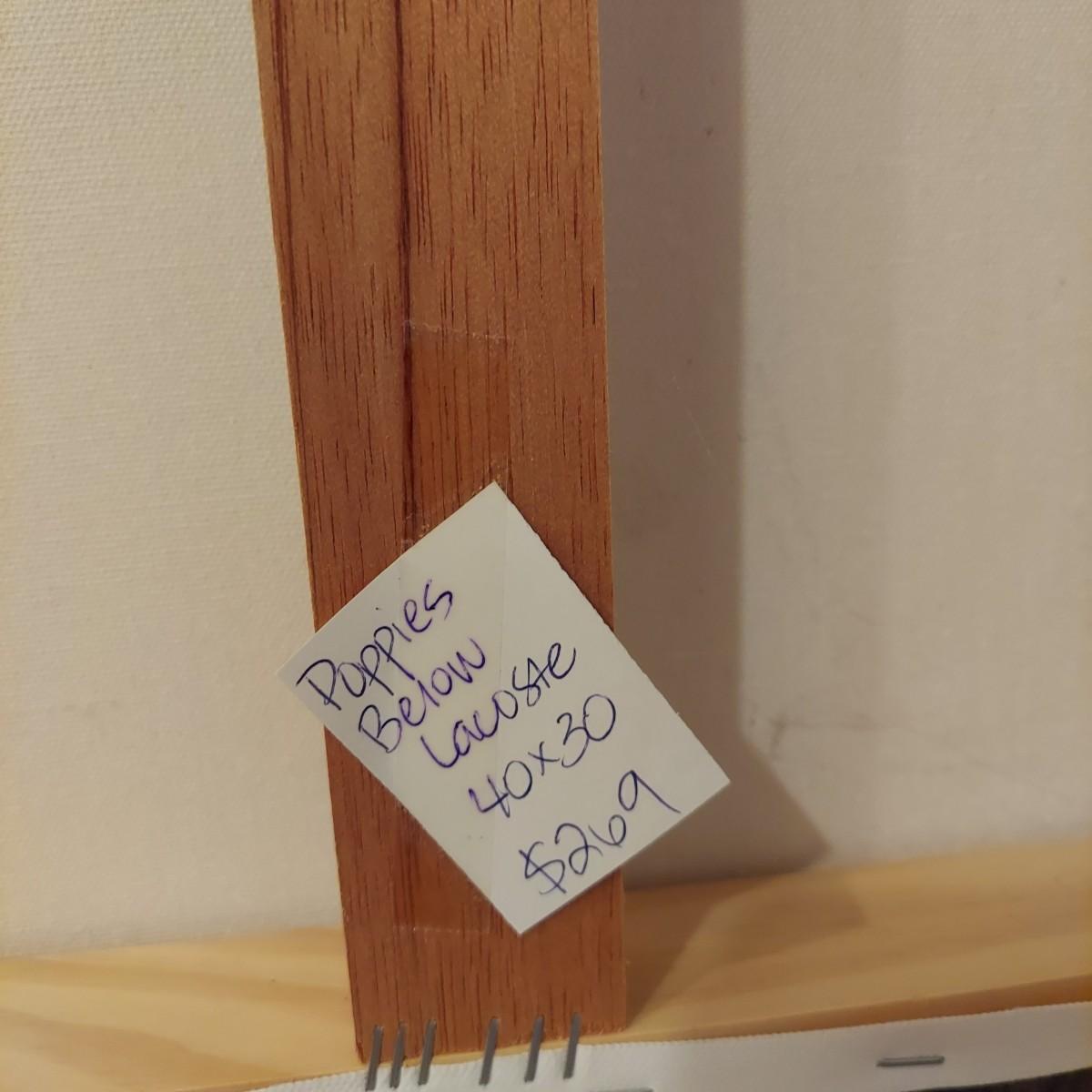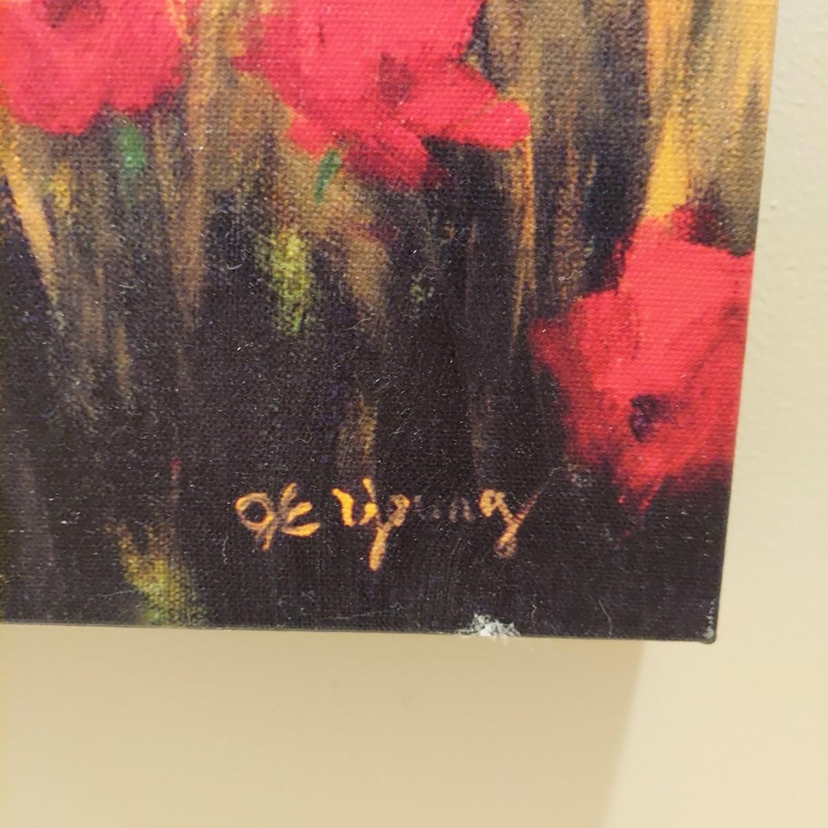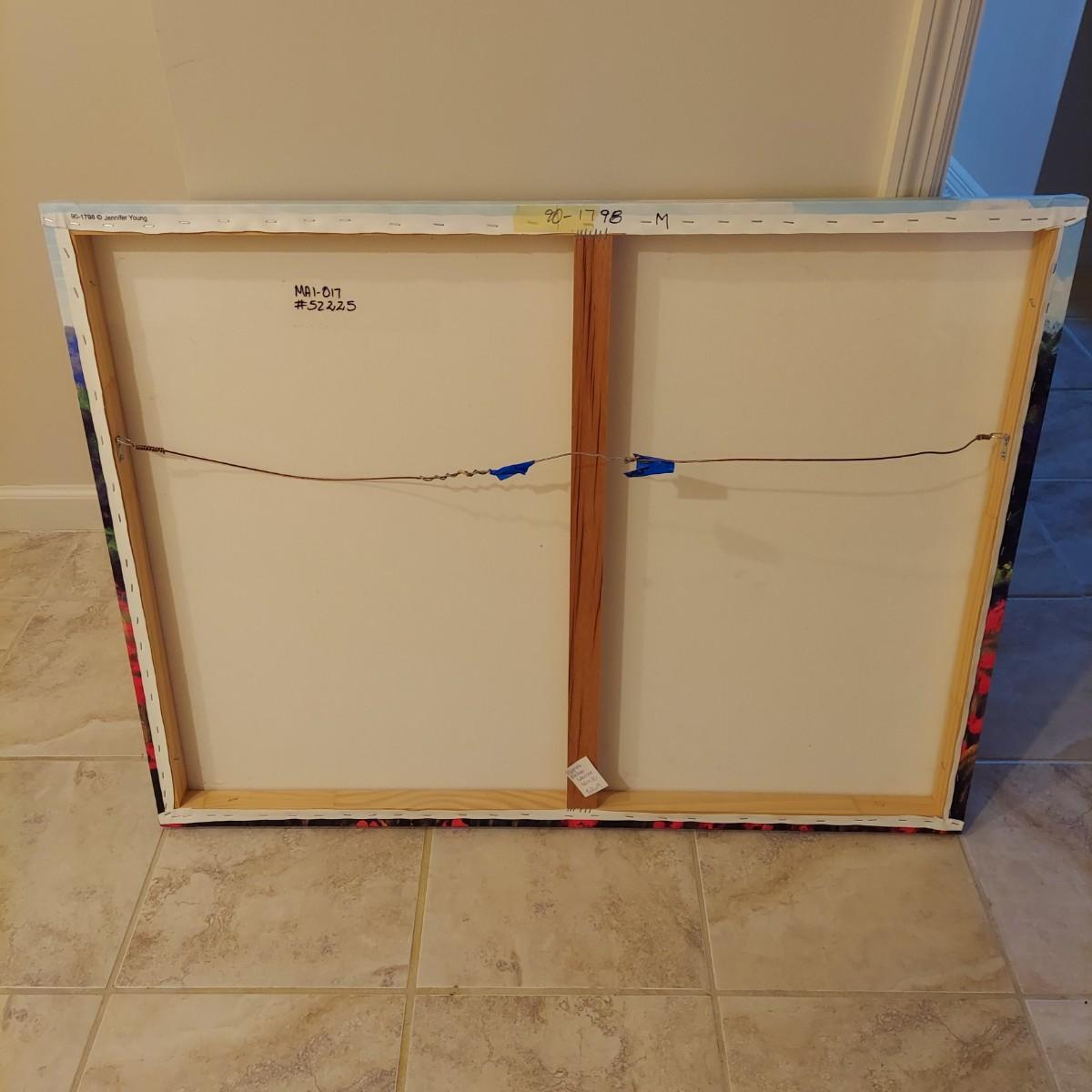 This art is tagged "Poppies Below Lacoste" by Jennifer Young. Printed on canvas and stretched around a frame. Measures approximately 40" x 1.5" x 30.5"H. Shipping available. Shipping art can be costly. We suggest contacting our preferred local shipping provider, Postage Express, with dimensions and getting an estimate before bidding: (828) 670-5501 or postageexpress@yahoo.com.