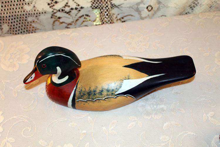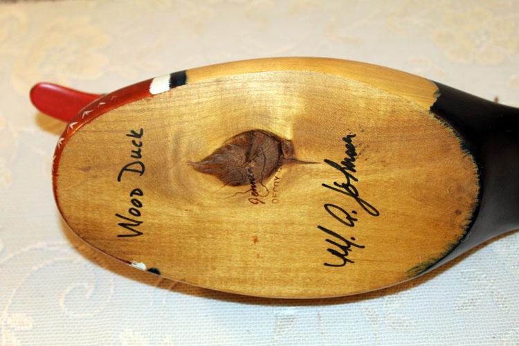Jennings carved wood painted duck decoy, signed Johnson (#71)
