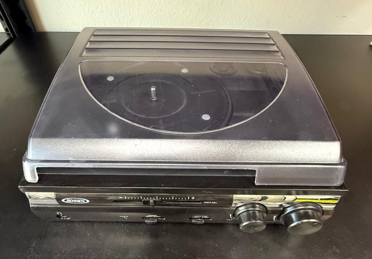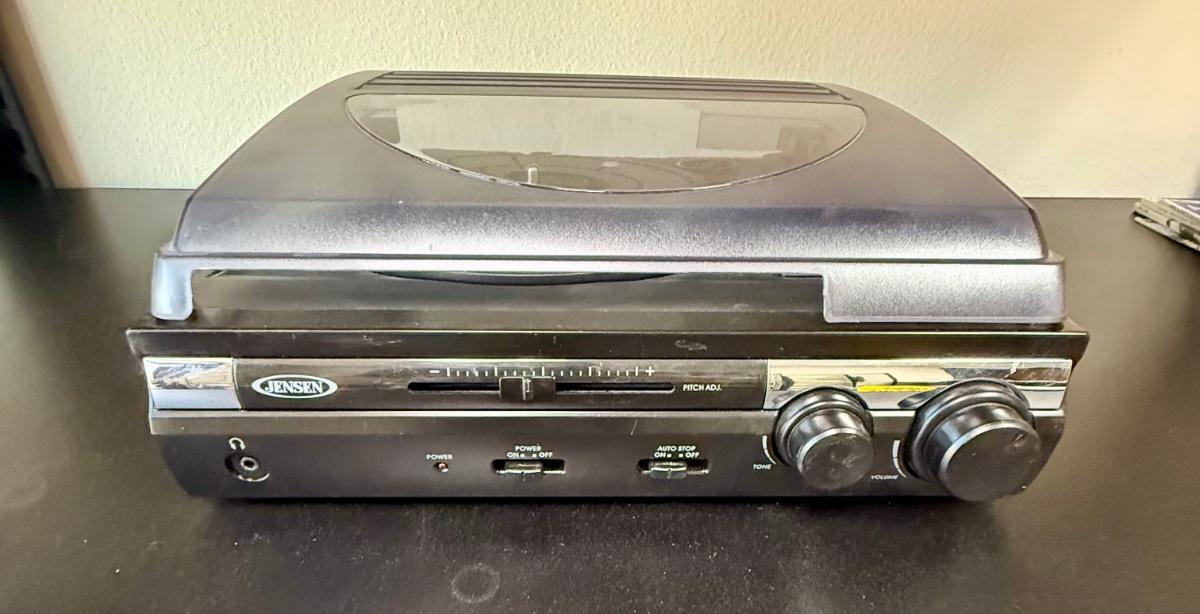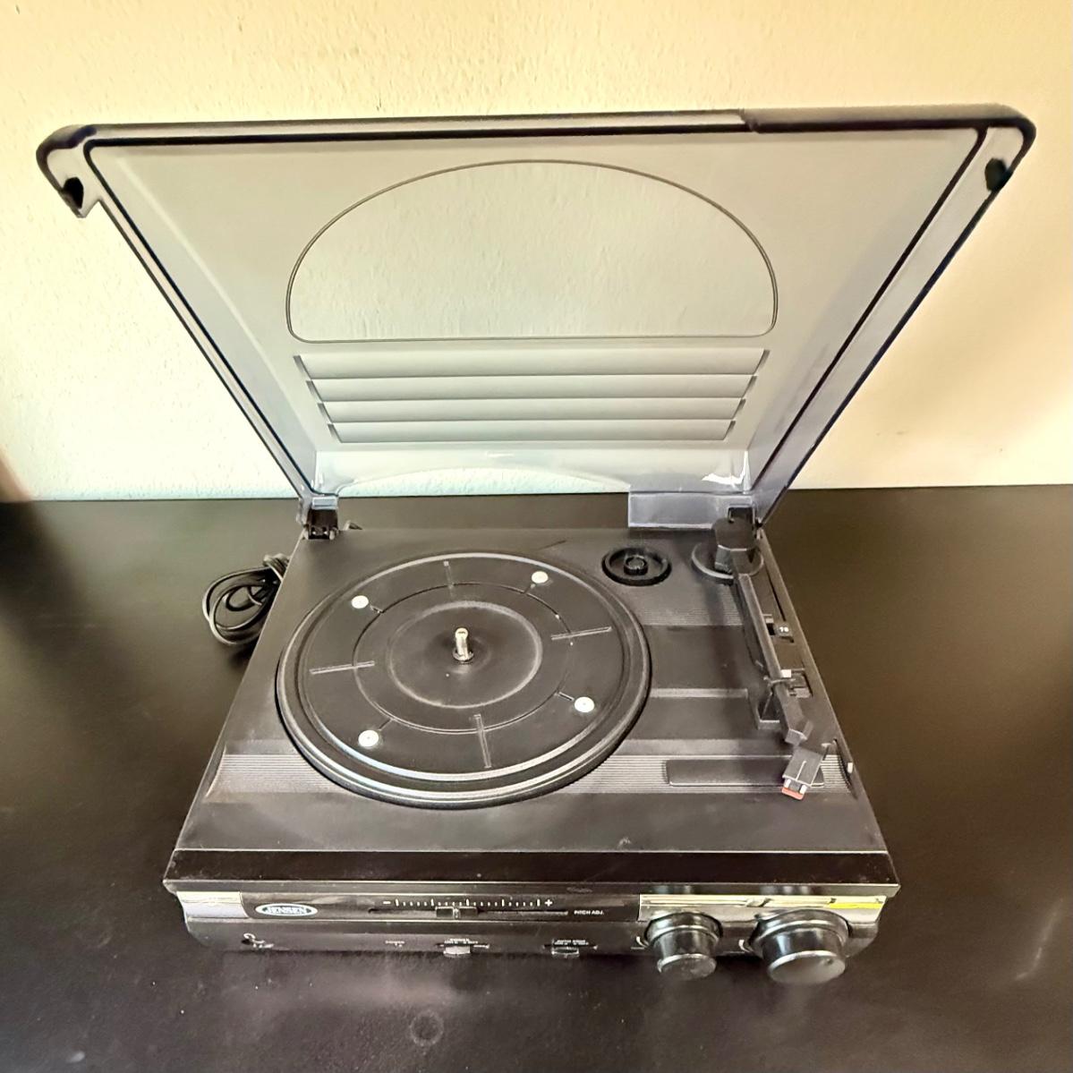 Jensen JTA-230 3 Speed Stereo Turntable with Built in Speakers, Aux in, Vinyl to MP3 Converting/Encoding