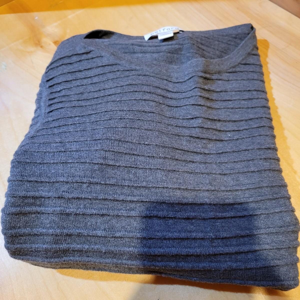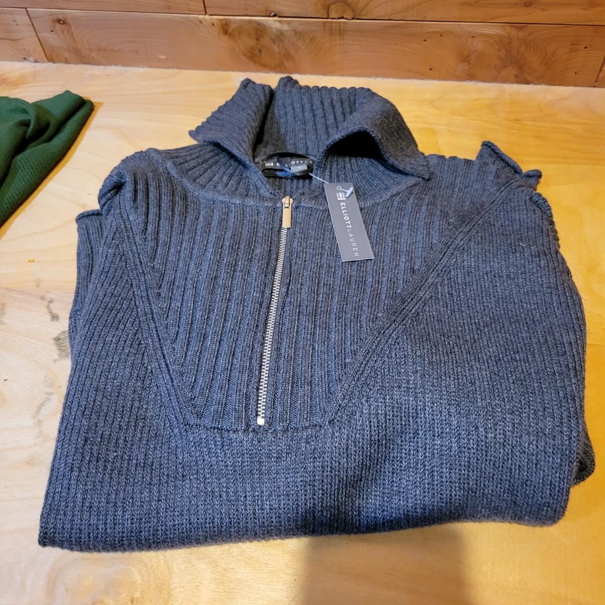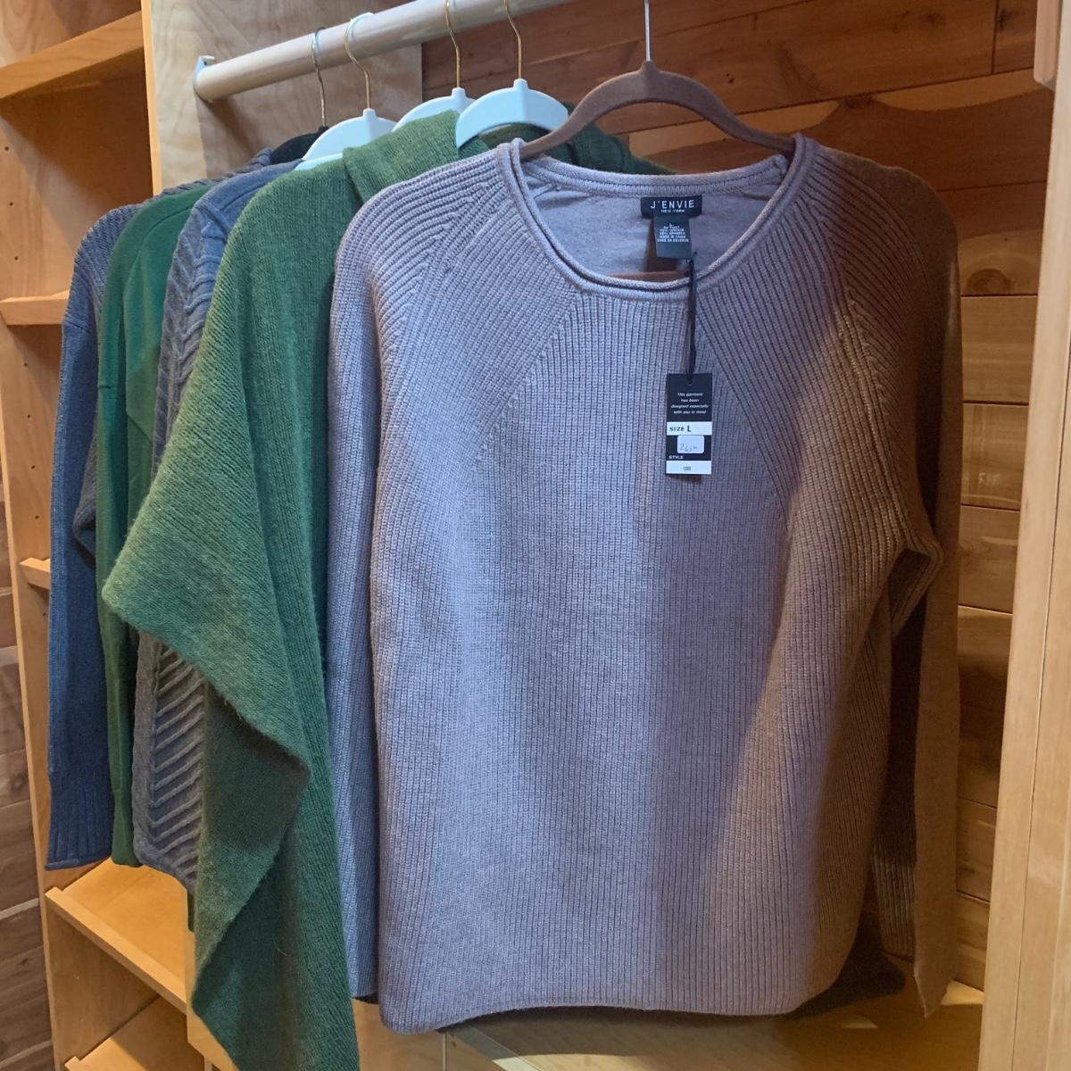 An assortment of sweaters and a poncho in excellent condition, many still have tags on them. Included are four sweaters and a poncho by manufacturers like J'envie, Elliott Lauren, Belford and more. Sizes are medium and large. Shipping available