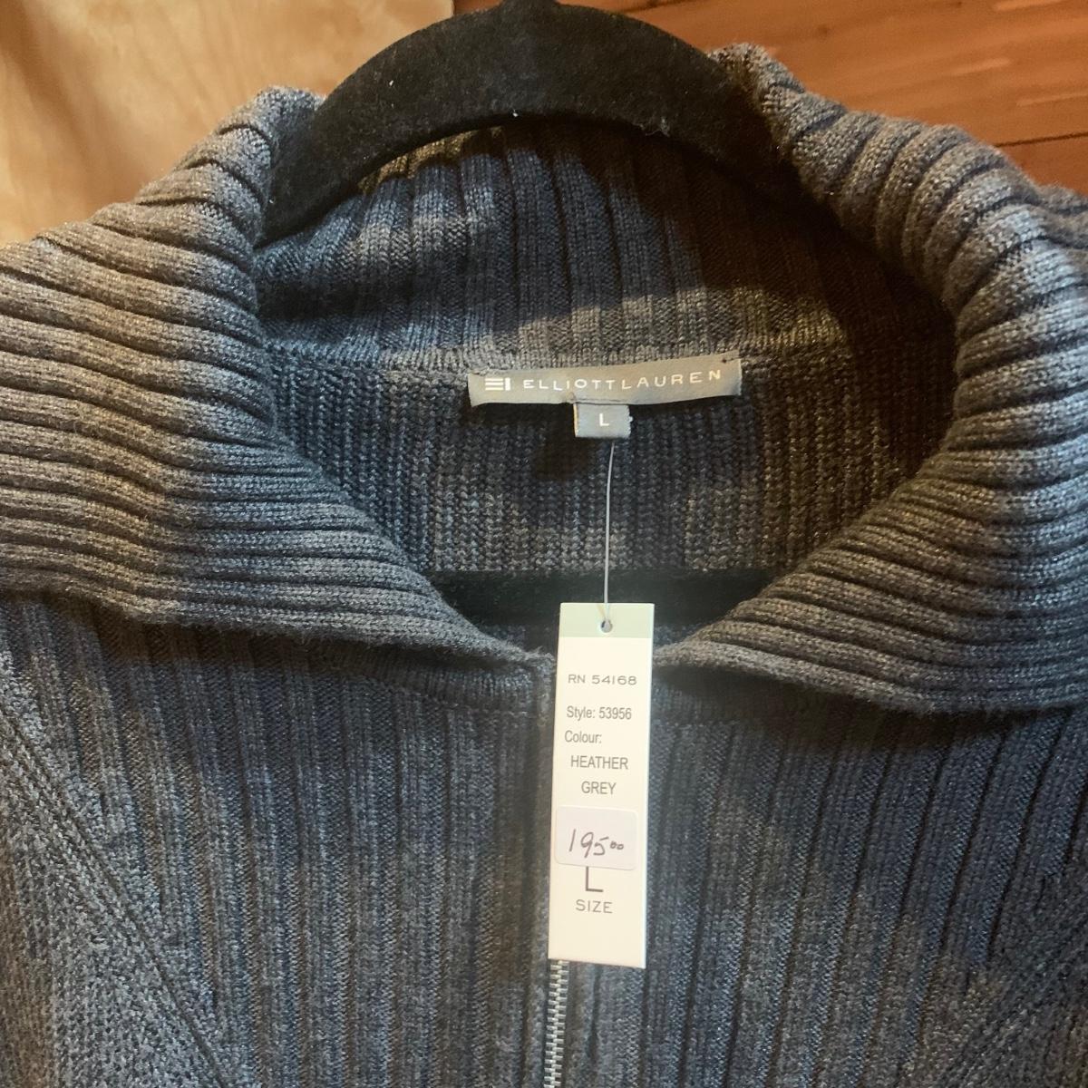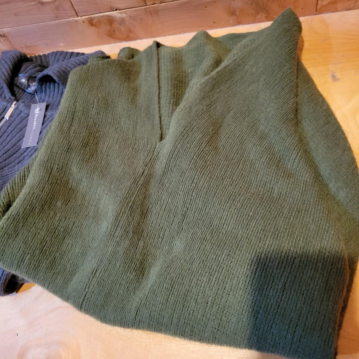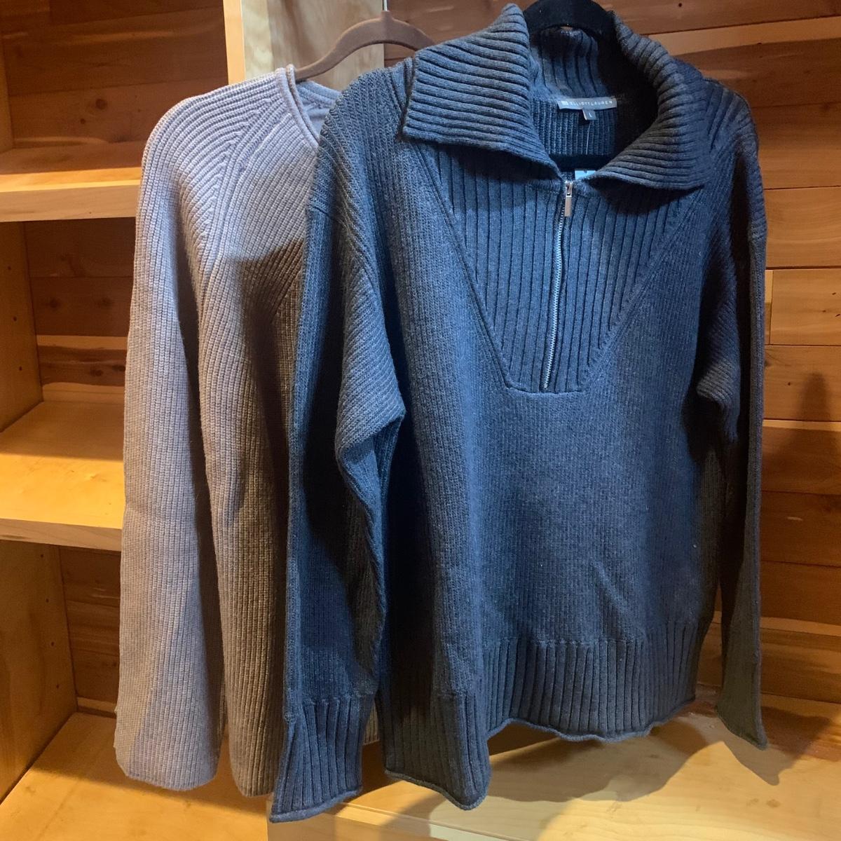 An assortment of sweaters and a poncho in excellent condition, many still have tags on them. Included are four sweaters and a poncho by manufacturers like J'envie, Elliott Lauren, Belford and more. Sizes are medium and large. Shipping available