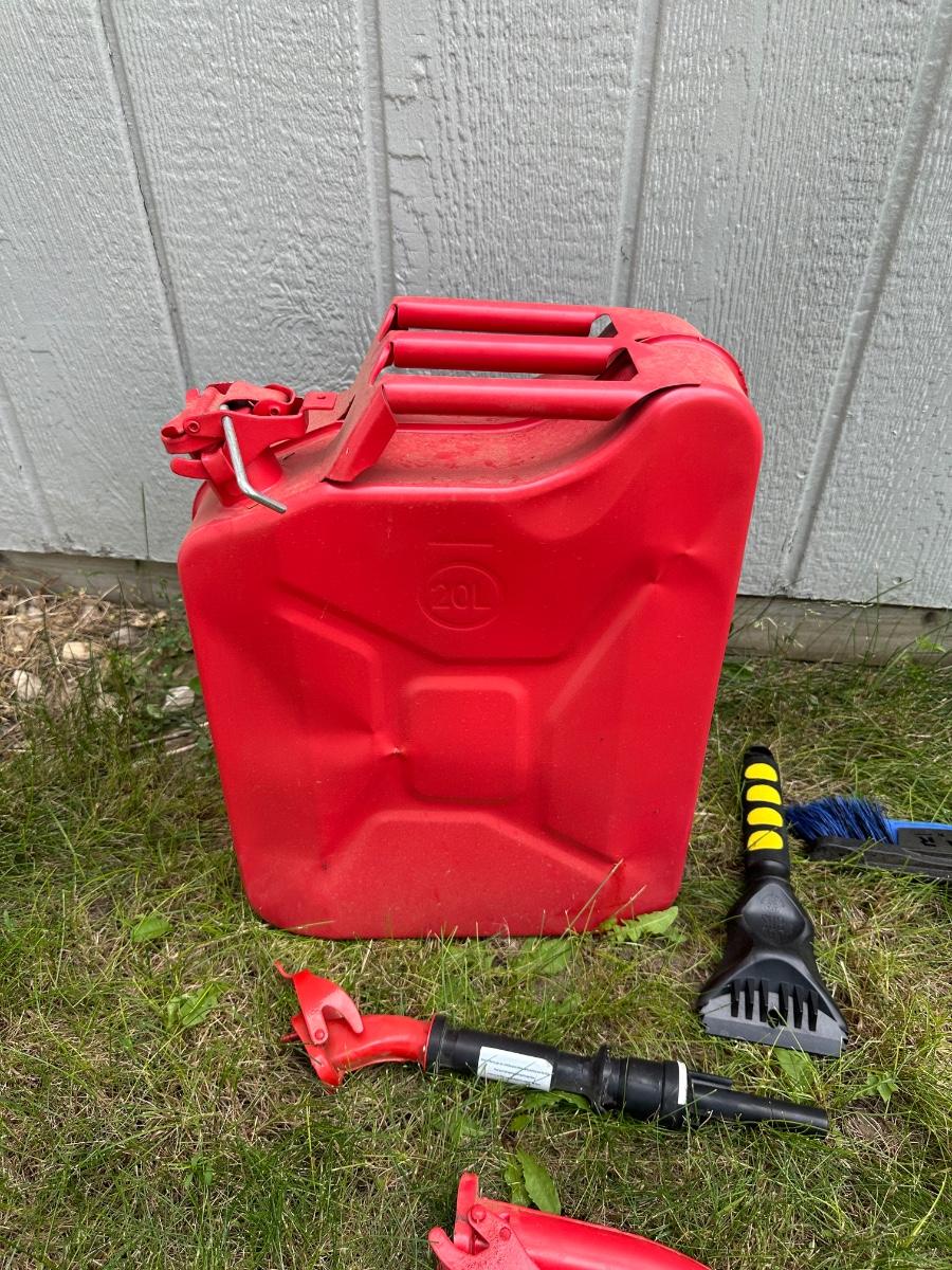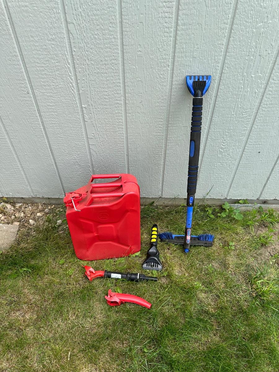 JERRY GAS CAN AND SNOW/ICE SCRAPERS