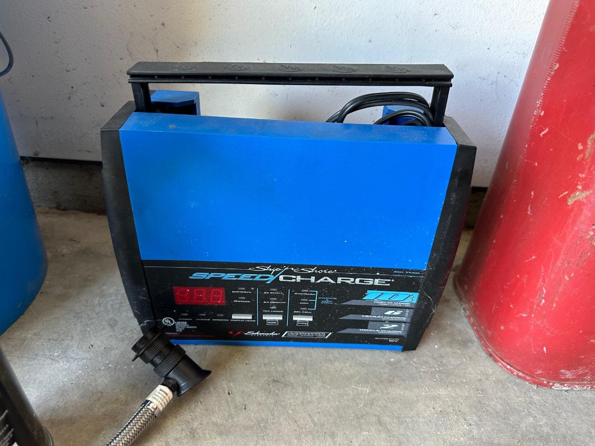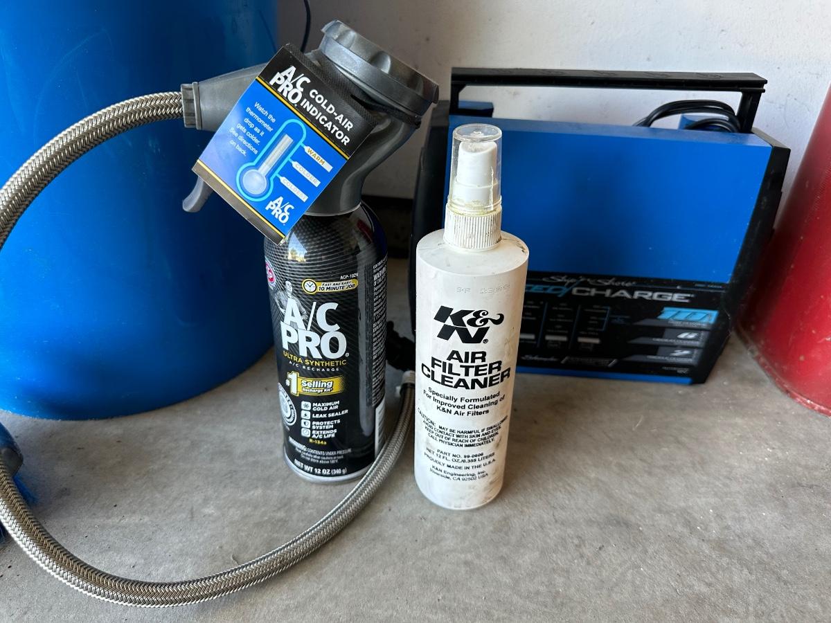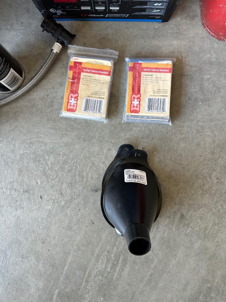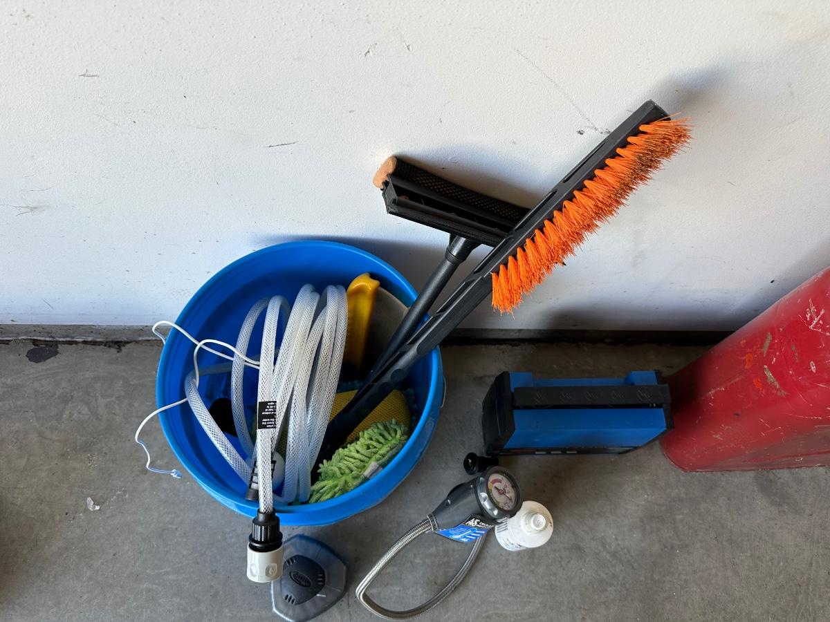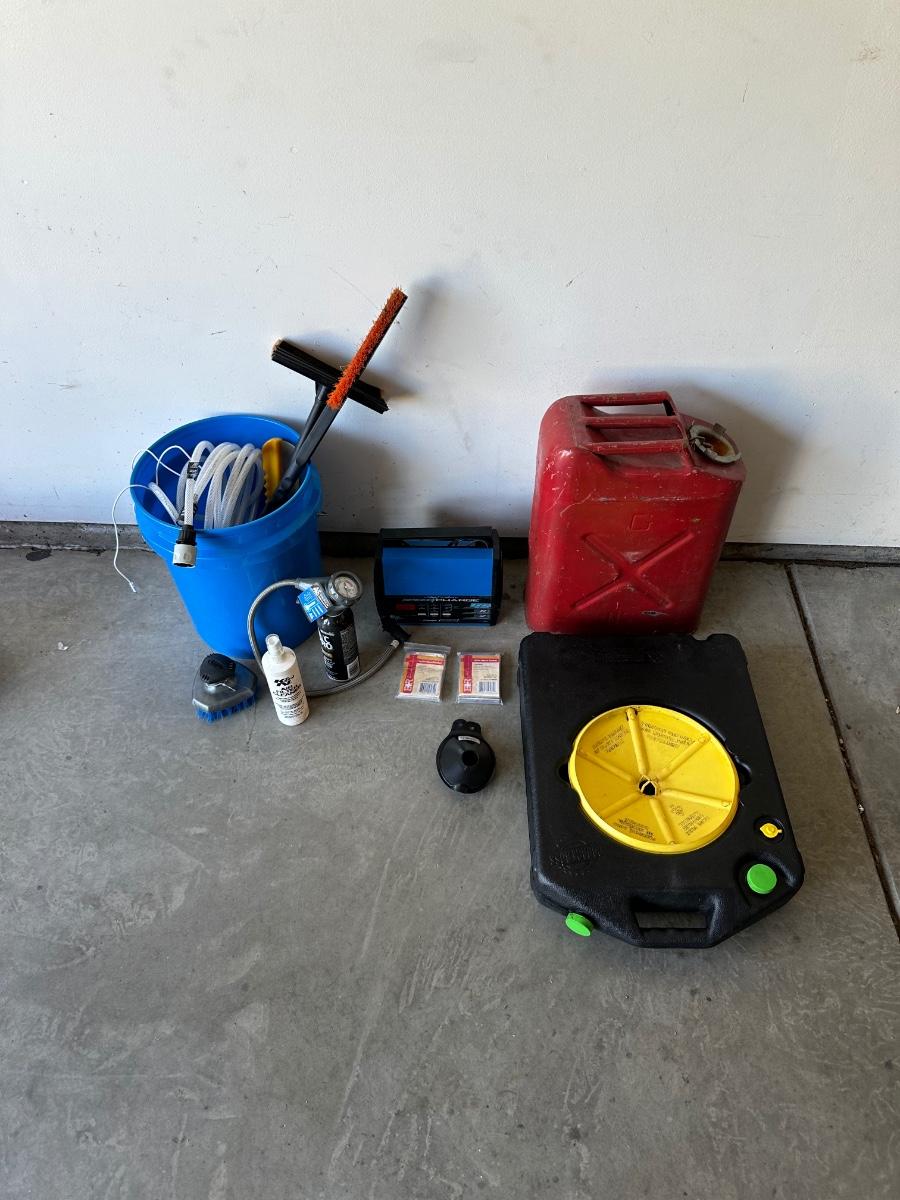 JERRY GAS CAN, SHIP N SHORE SPEED CHARGER, A/C PRO RECHARGE, GARAGEBOSS OIL PAN, FUNNELS AND CAR WASH ITEMS