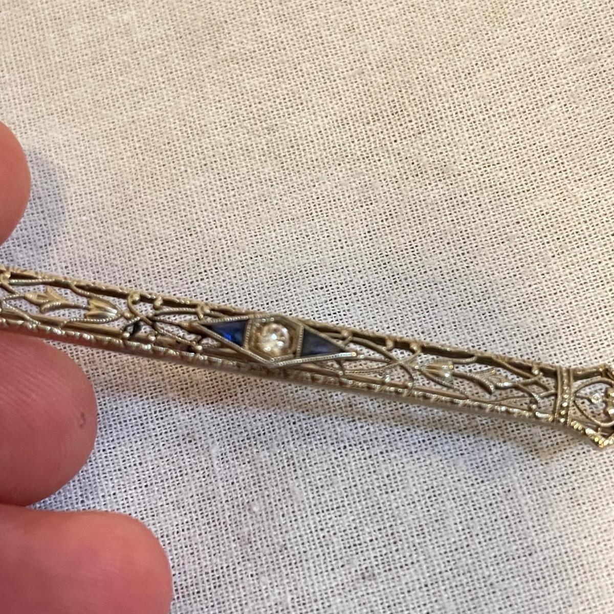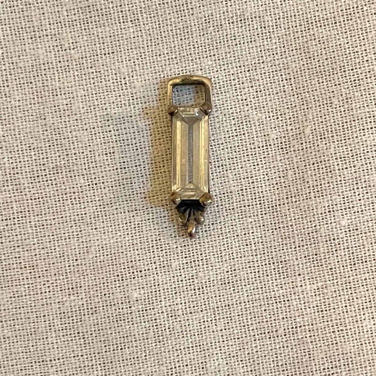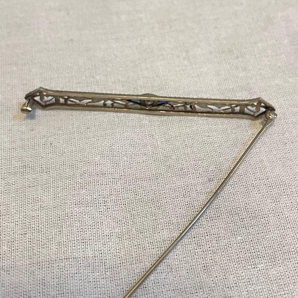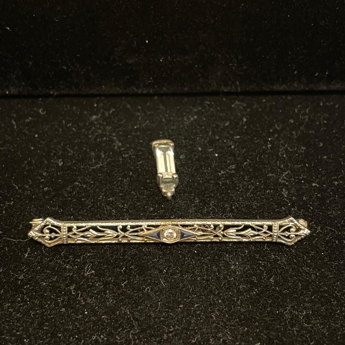 Two Jerusalem cross brooches, one with illegible silver marking and the larger one being stamped Silver 935. Also included is a petite unmarked silver and clear gemmed pendant plus a long pin with a rhinestone and onyx colored centerpiece.