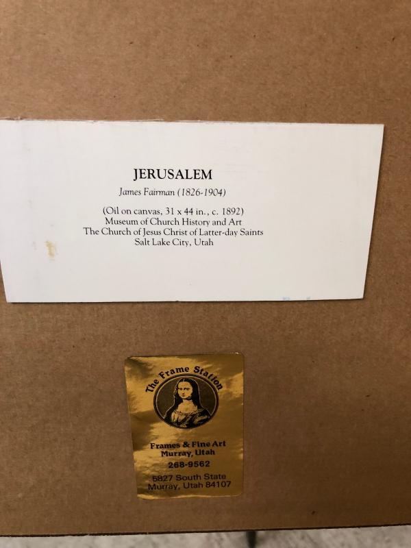 Here is a 29" x 21" faithful reproduction of an 1892 oil on canvas painting entitled "Jerusalem" by artist James Fairman(1826-1904)...The original is found at the LDS Museum of Church History and Art....Framed and under glass....
