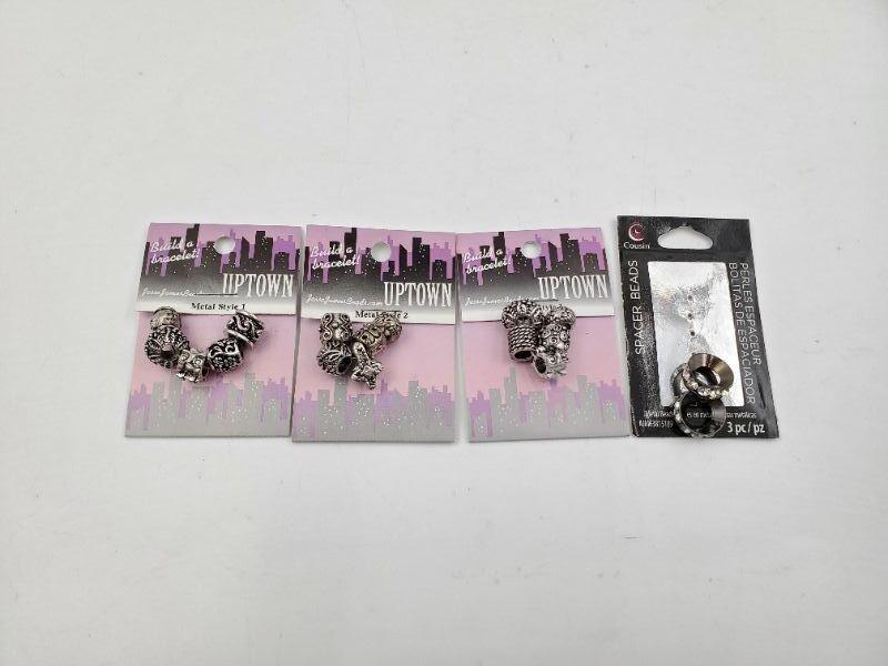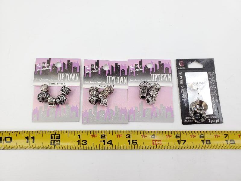 3 Jesse James metal beads or spacers unused. 1 pack of COUSIN sparkly spacers, 2 spacers our of 3 are included, one is loose. Good condition