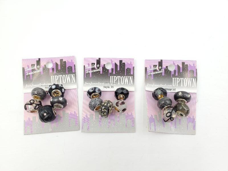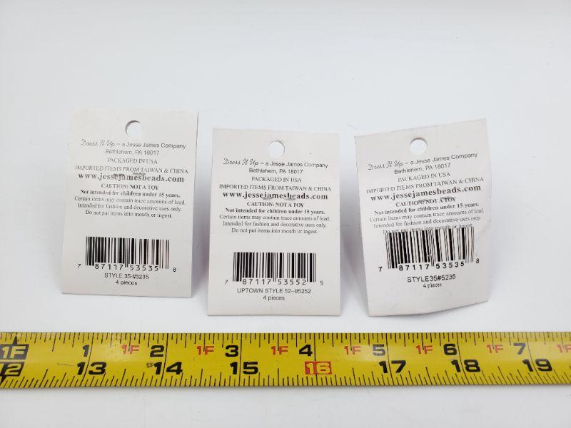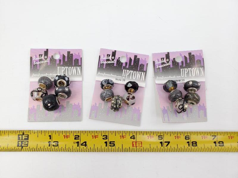 3 new packages of Jesse James Uptown bead cards, glass and plastic metal lined beads